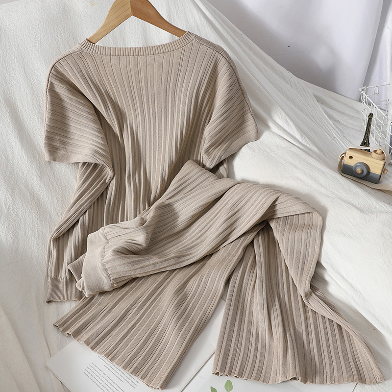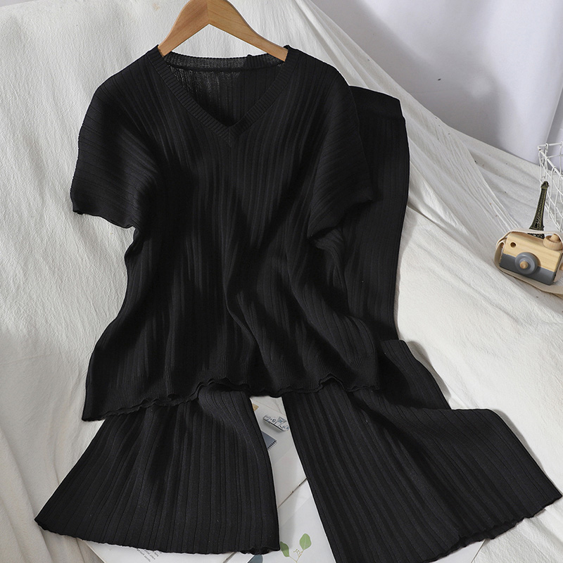 九分百褶阔腿裤女高腰垂感夏2024新款宽松针织V领上衣时尚套装潮