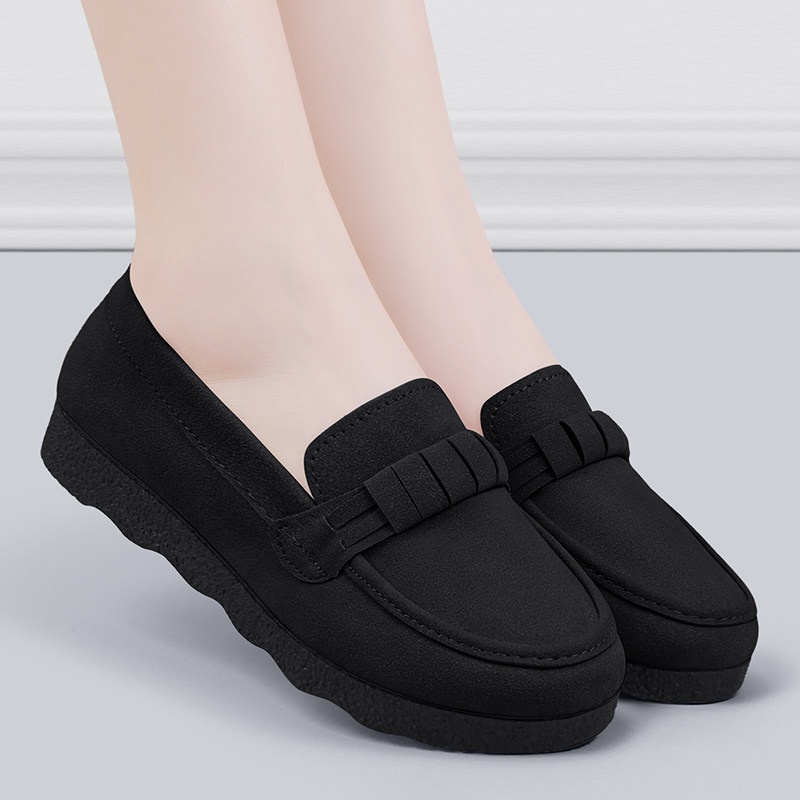 老北京布鞋女新款不累脚2025正品软底豆豆鞋春秋防滑黑色工作鞋子