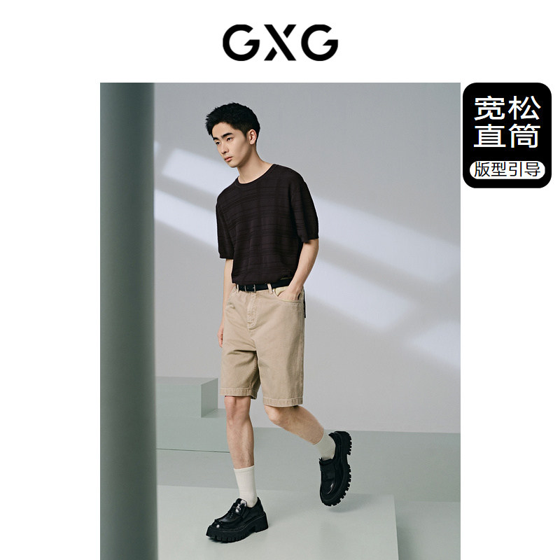 GXG男装 肌理系列直筒水洗牛仔短裤复古休闲短裤男 2024夏季品