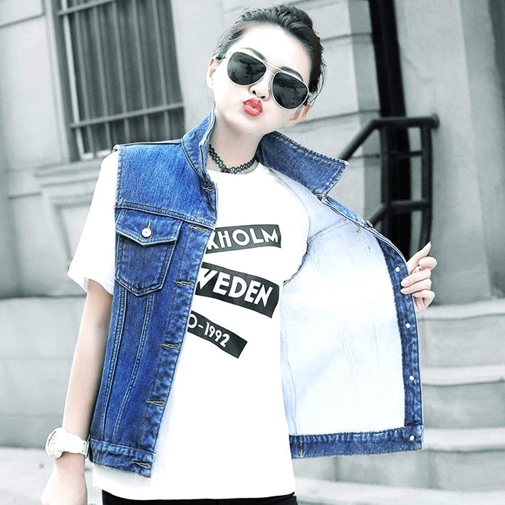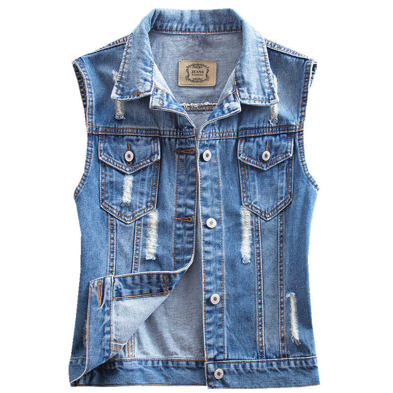 2024春夏新品 短款牛仔马甲女韩版无袖破洞时尚大码百搭背心外套