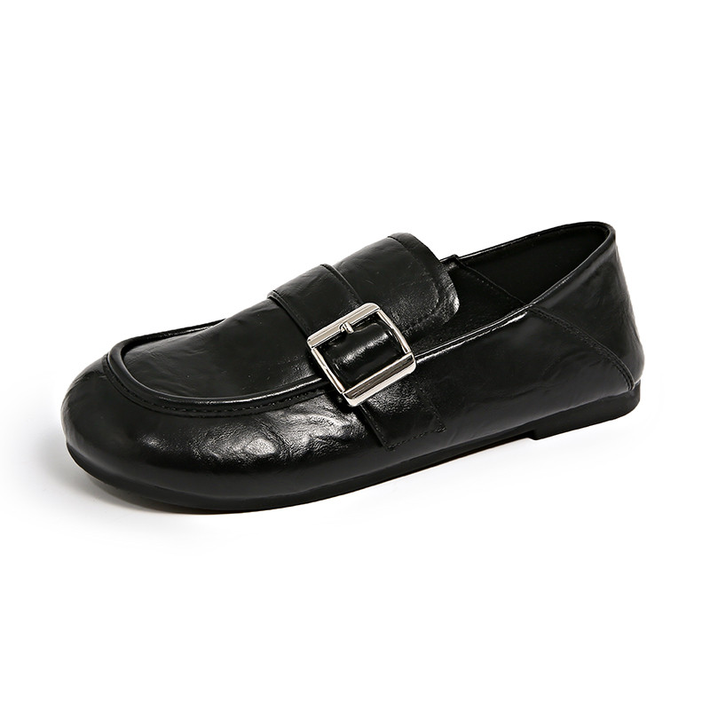 温州真皮低跟平底单鞋女士乐福鞋2025秋季新款英伦风黑色小皮鞋