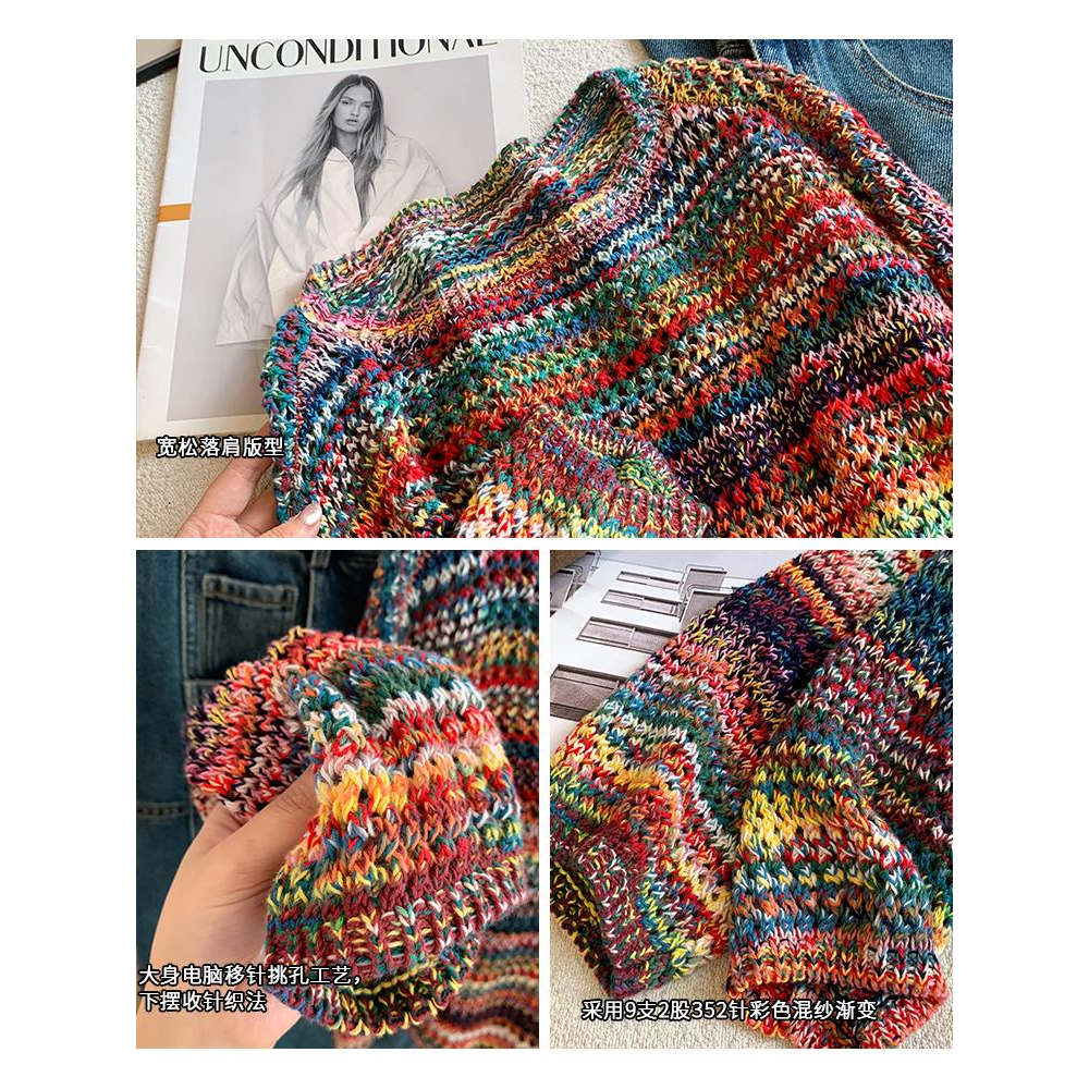 大叮自制霓虹针织衫!彩色混纱渐变宽松上衣移针挑孔套头毛衣女秋