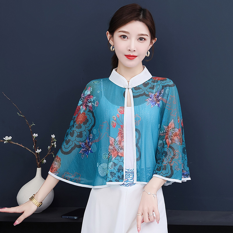 配裙子的小披肩小外披风雪纺衫小斗篷小外搭防晒衣薄外套上衣纱衣