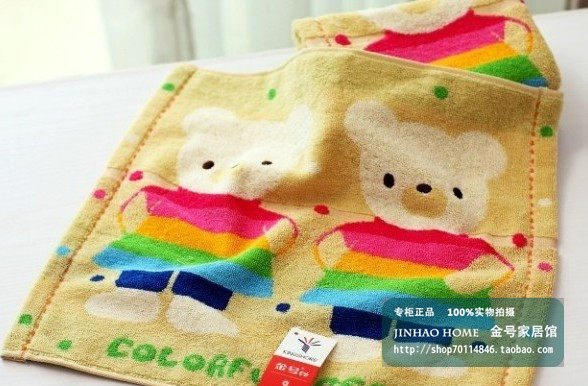 包邮金号正品RF758纯棉提缎绣卡通小熊图案方巾儿童毛巾舒适柔软