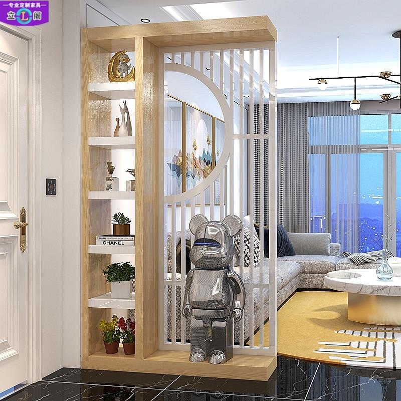 实木双面烤漆多功能屏风入户隔断现代框架客厅玄关简约装饰柜定制