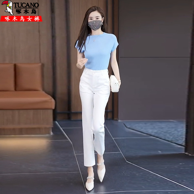 秋季新款休闲九分显瘦直筒烟管裤