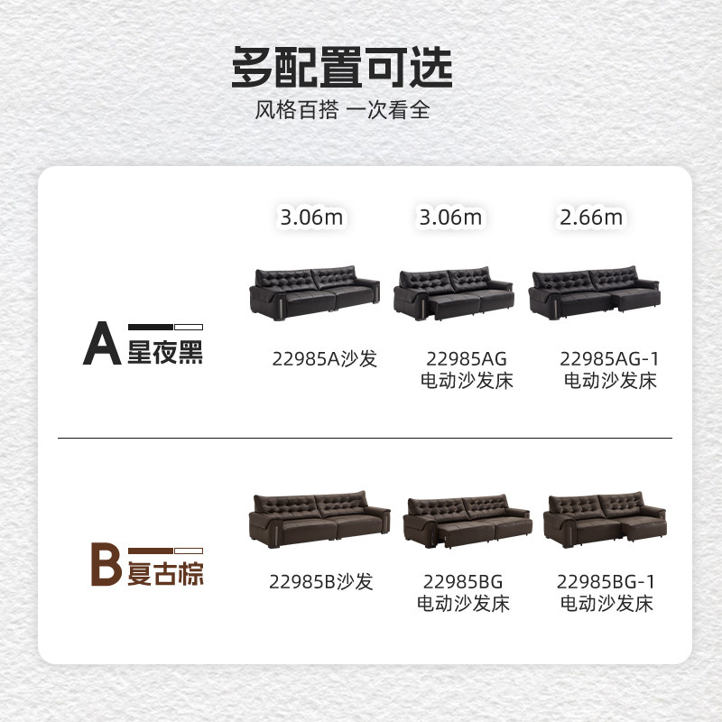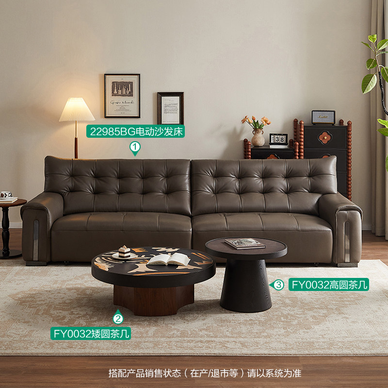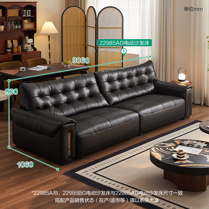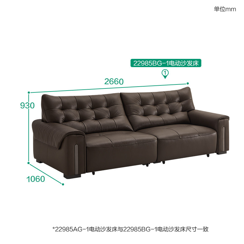 全友家居门店同款 22985AG BG 直排一字型真头层黄牛皮艺沙发床