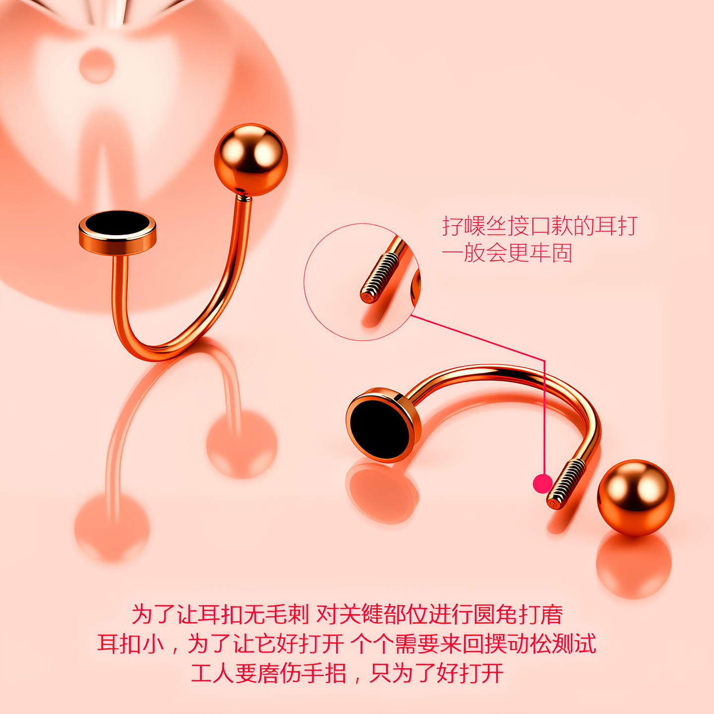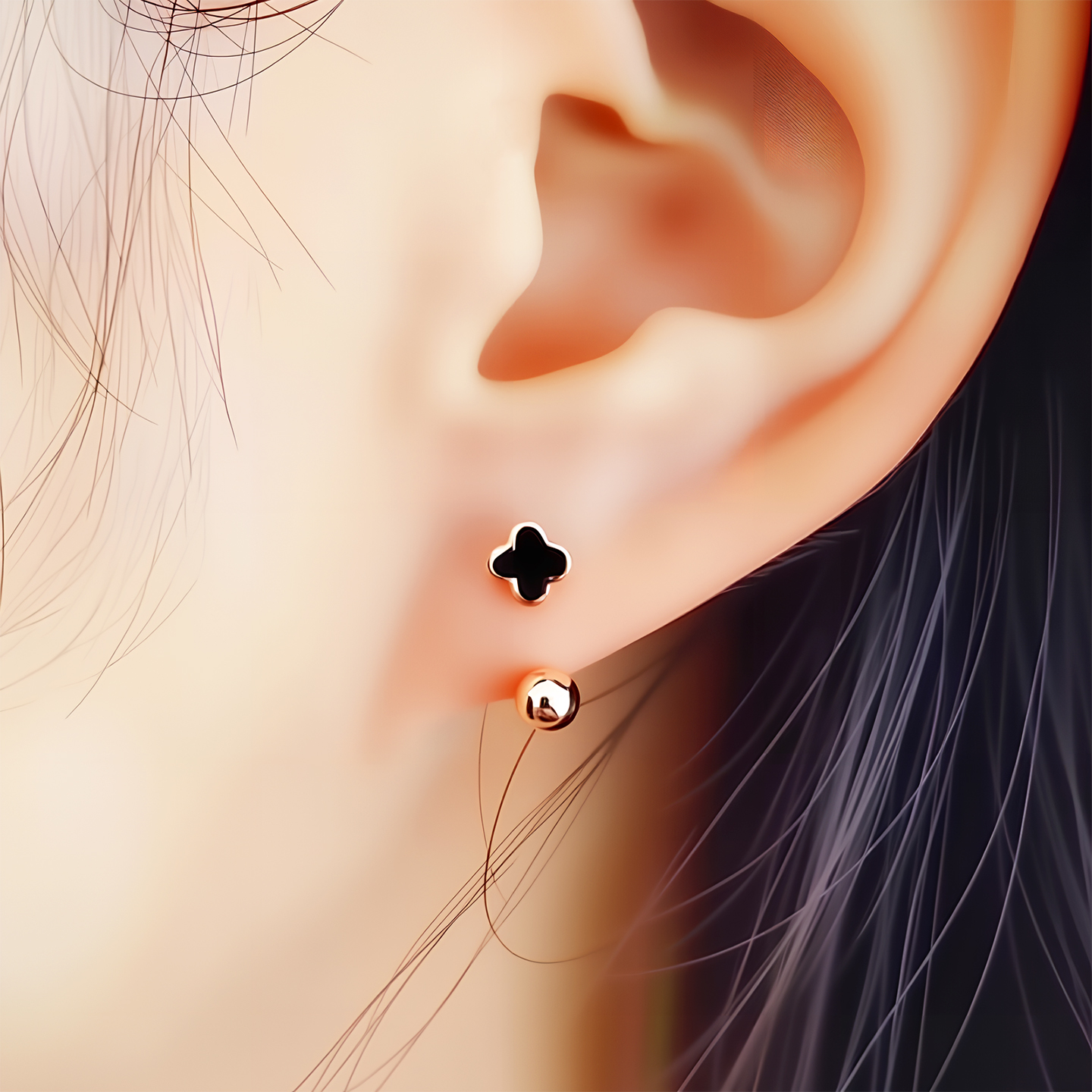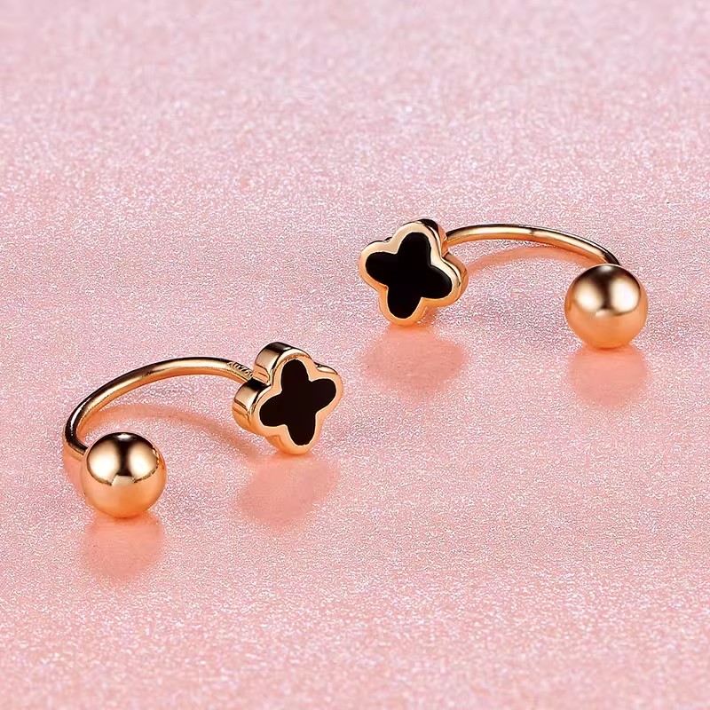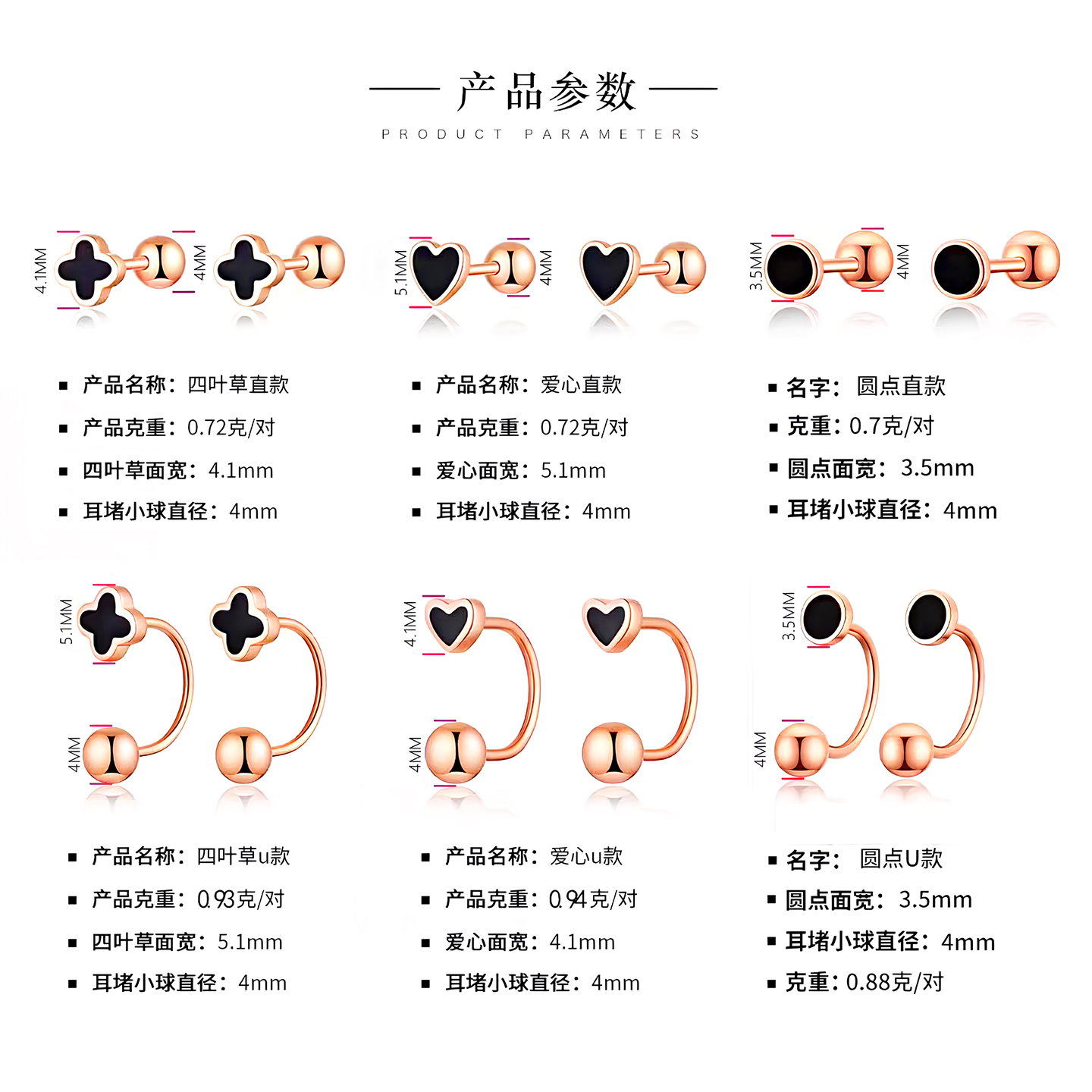 拧螺丝耳钉四叶草18k玫瑰金配件耳堵u型耳环女耳钉螺丝拧扣耳骨钉