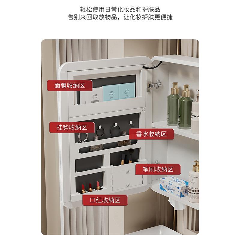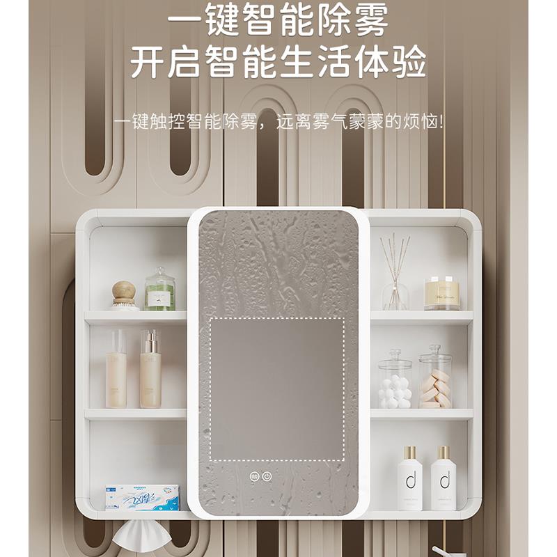 太空铝智能浴室镜柜单独挂墙式带灯除雾卫生间美妆镜子带置物架