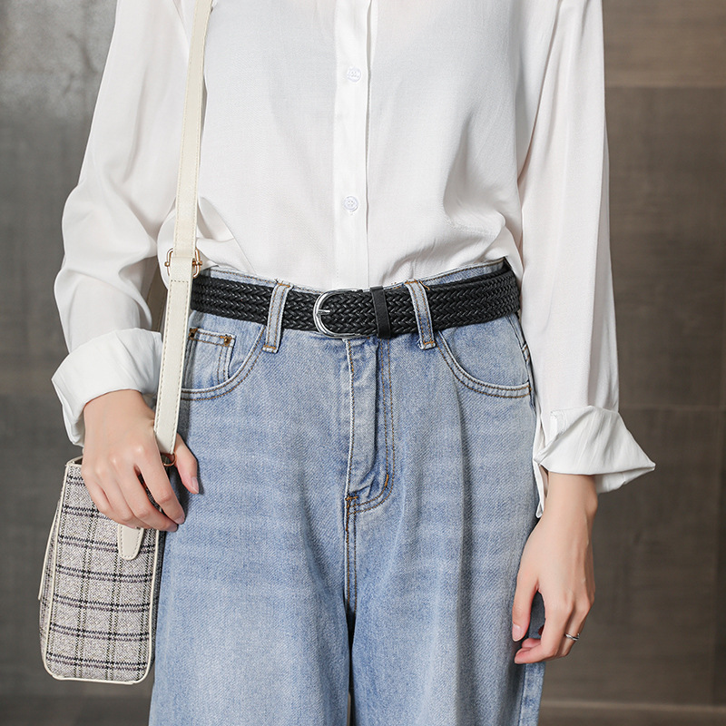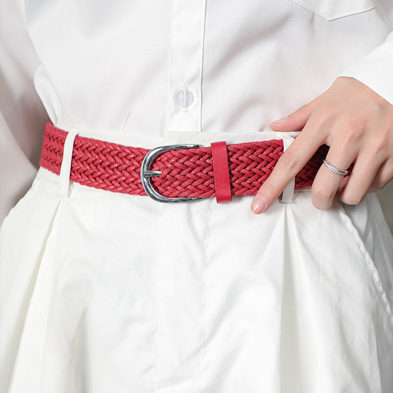 欧美女士编织腰带复古红黑米驼灰色装饰牛仔裤带连衣裙针扣皮带女