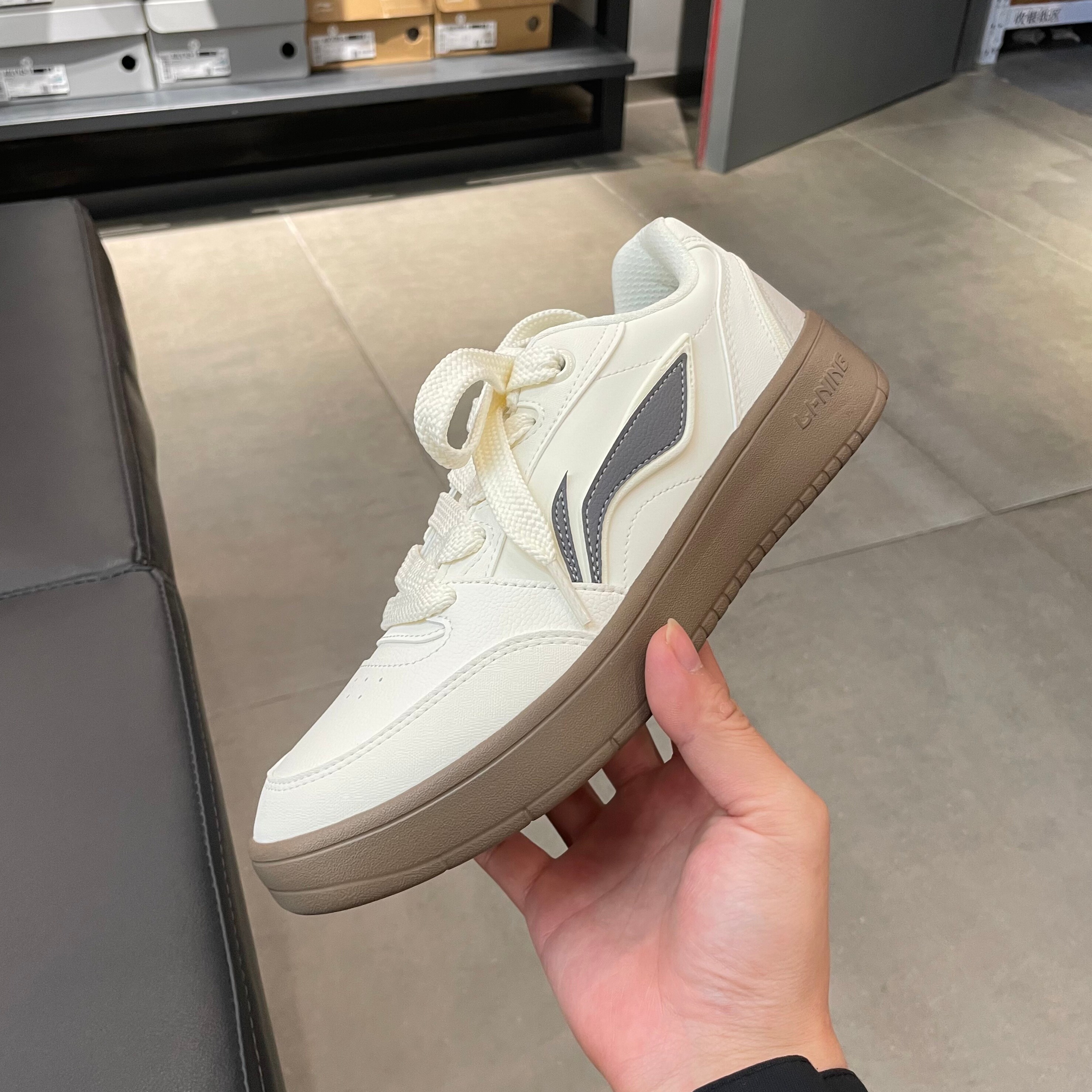 李宁经典休闲鞋男子2025新元宝V3耐磨低帮板鞋时尚小白鞋AGCV107