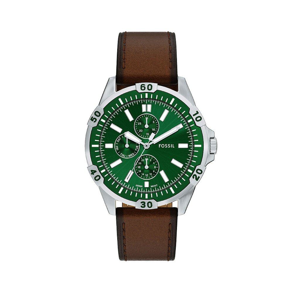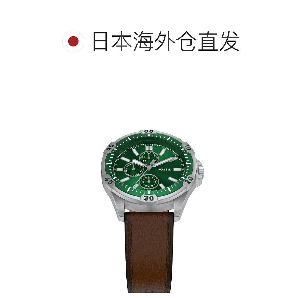 日本直邮Fossil 男士 Garrett 多功能棕色皮革手表 FS6147