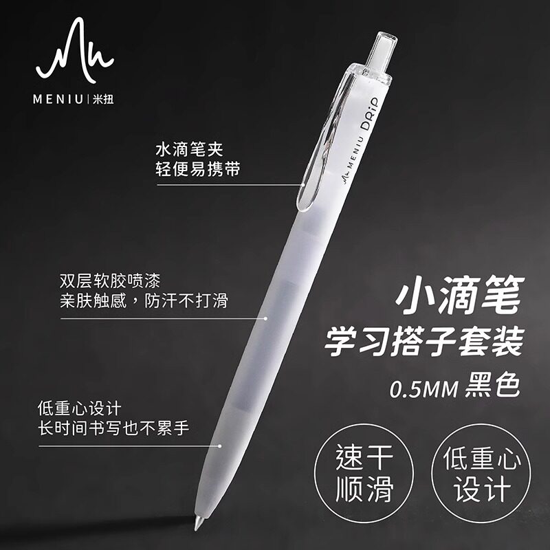 米扭中性笔学习搭子小滴笔按动水笔黑色浓墨学生专用笔考试刷题笔