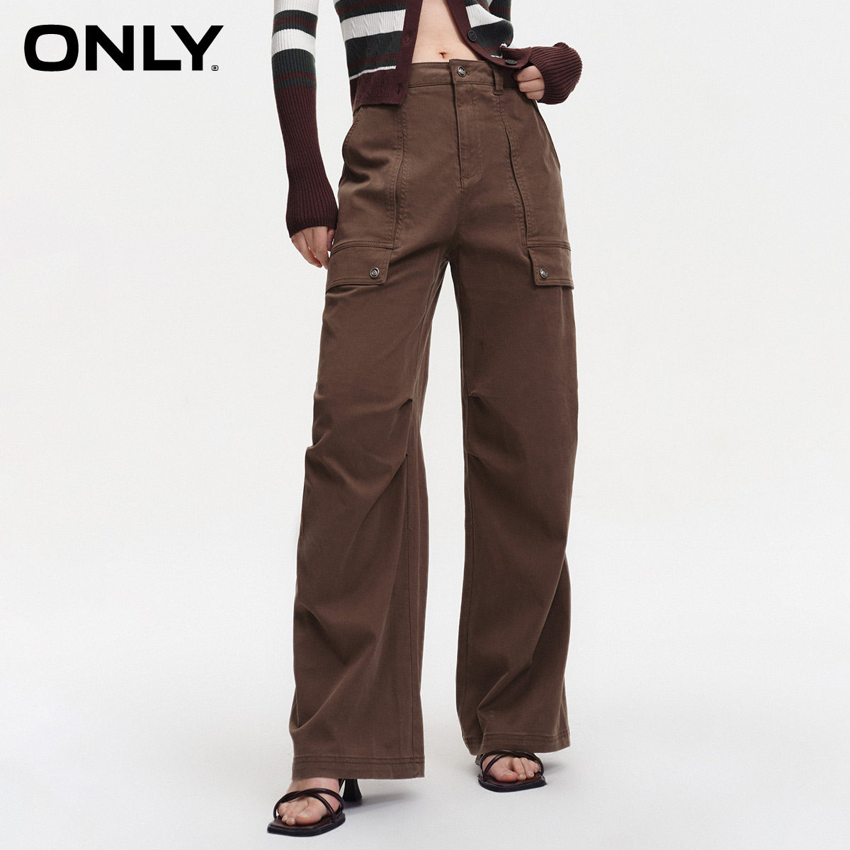 【ONLY奥莱】秋冬百搭休闲高腰口袋阔腿工装休闲裤女