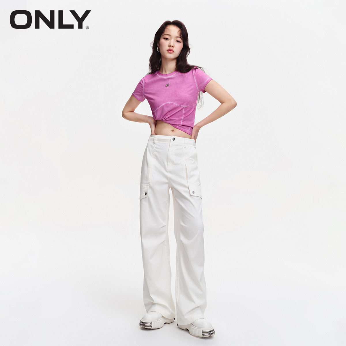 ONLY百搭高腰口袋阔腿工装休闲裤