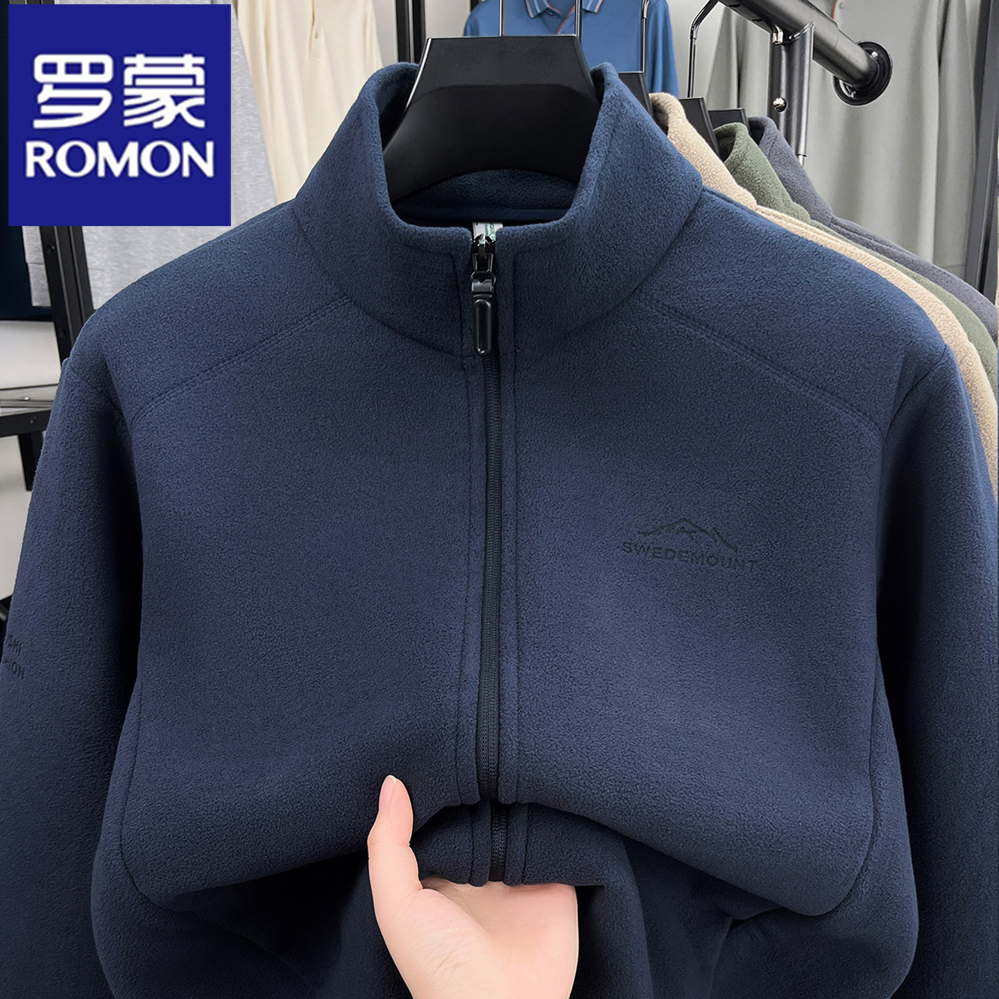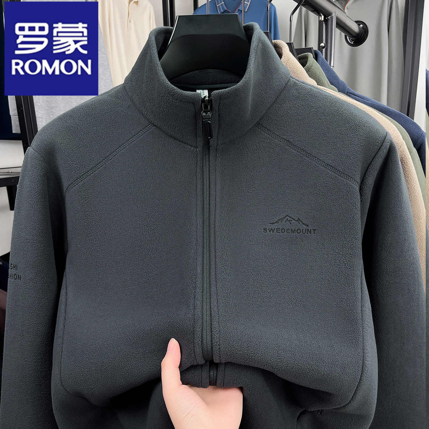 罗蒙秋冬男士外套奥粒绒卫衣开衫2025新款中青年保暖抓绒衣服夹克