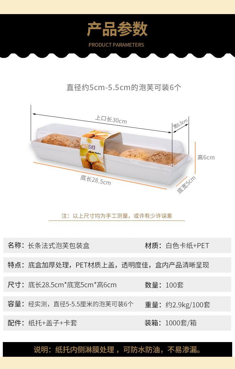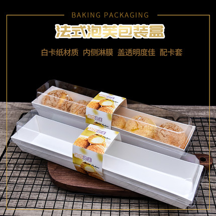 长条法式泡芙盒流心泡芙人气泡芙闪电脆皮泡芙天地盖纸塑西点盒子