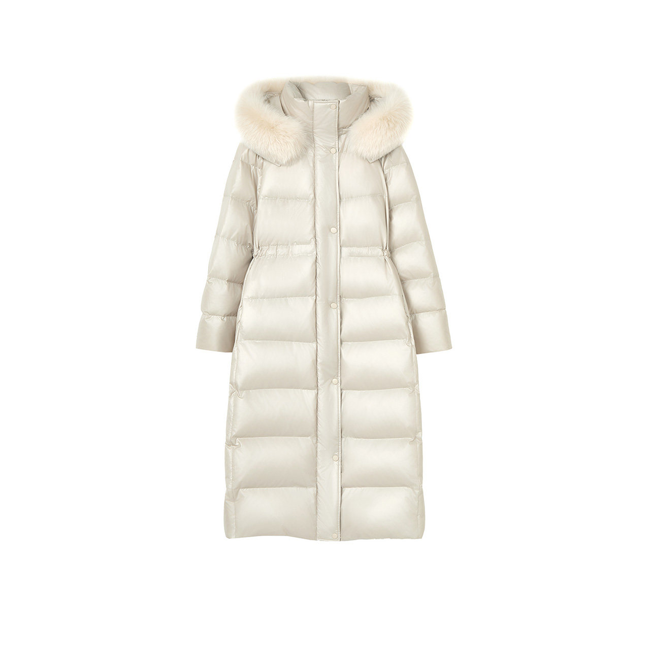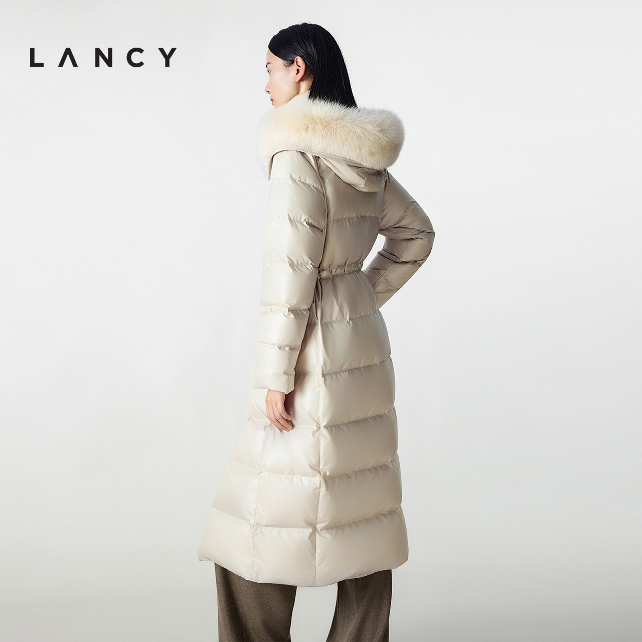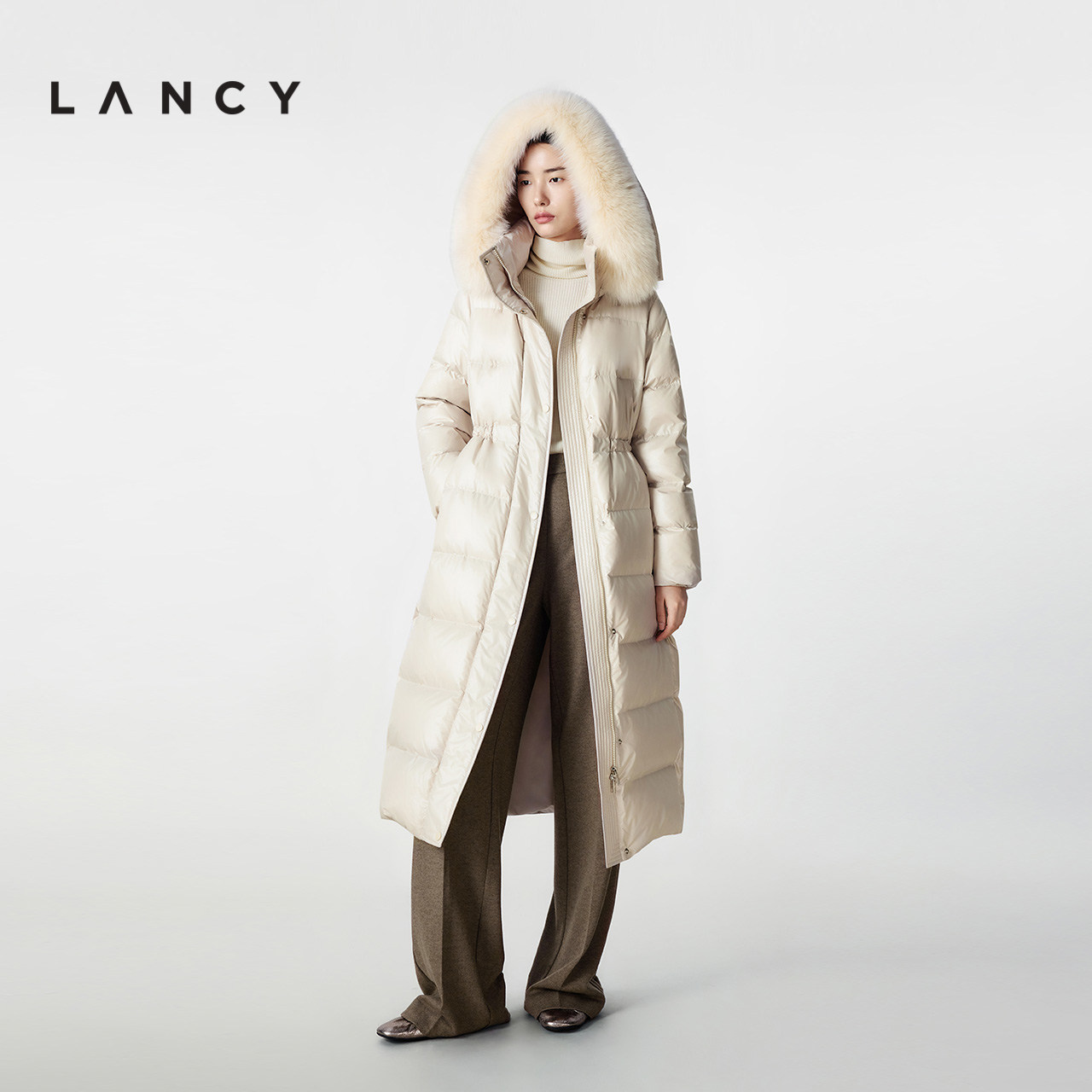 【匈牙利白鹅绒】LANCY/朗姿2025冬新款毛领收腰连帽长款羽绒服女