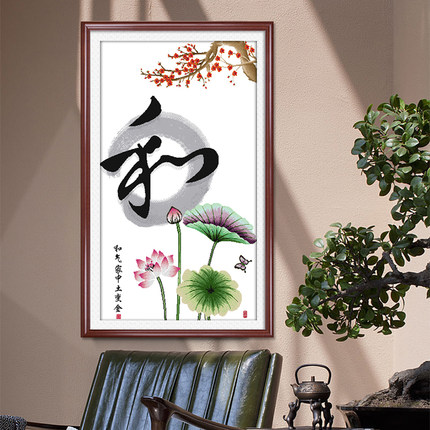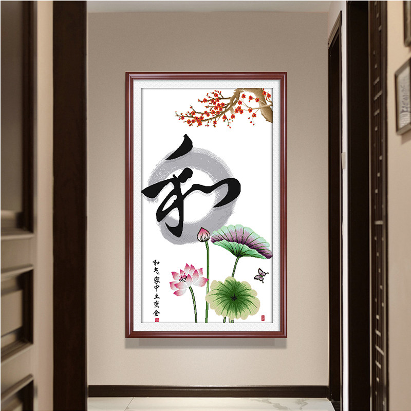家和万事兴十字绣和字荷花和气家中土变金家庭和睦和谐手工印花绣