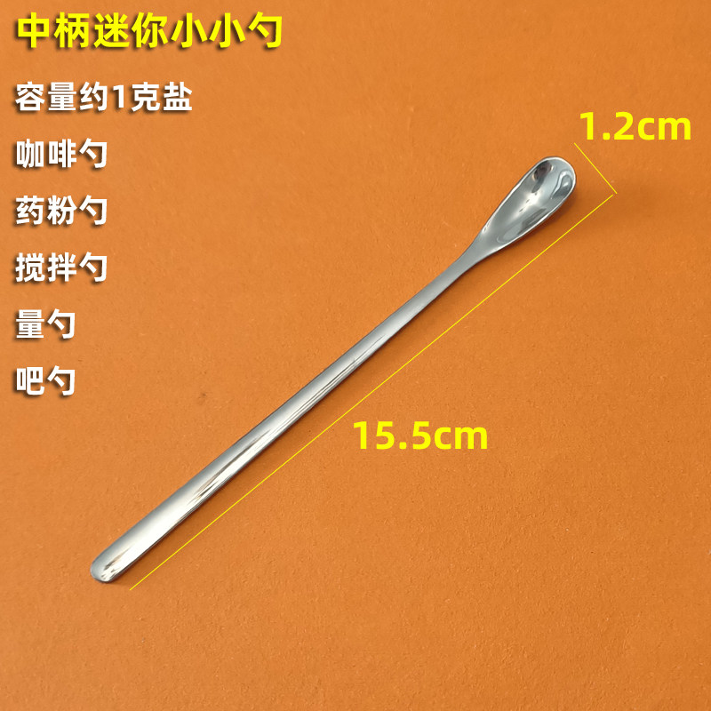 不锈钢加厚迷你细长小勺子小口径超细小头勺咖啡搅拌1克药粉量勺