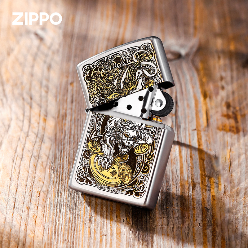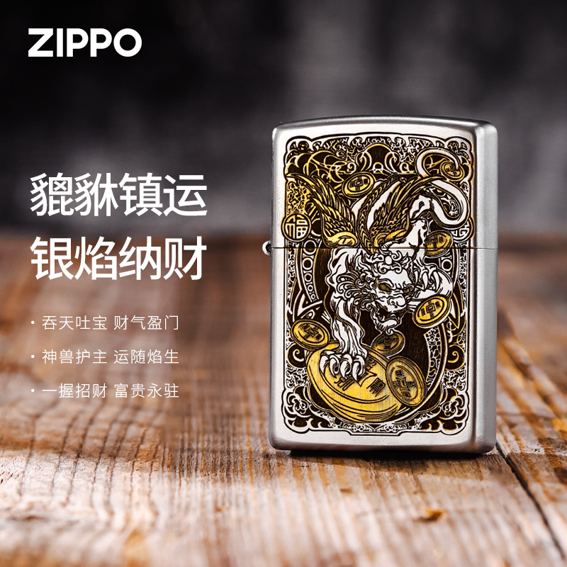 zippo打火机财运貔貅磨砂深雕官方正品煤油防风吉祥礼物送男士