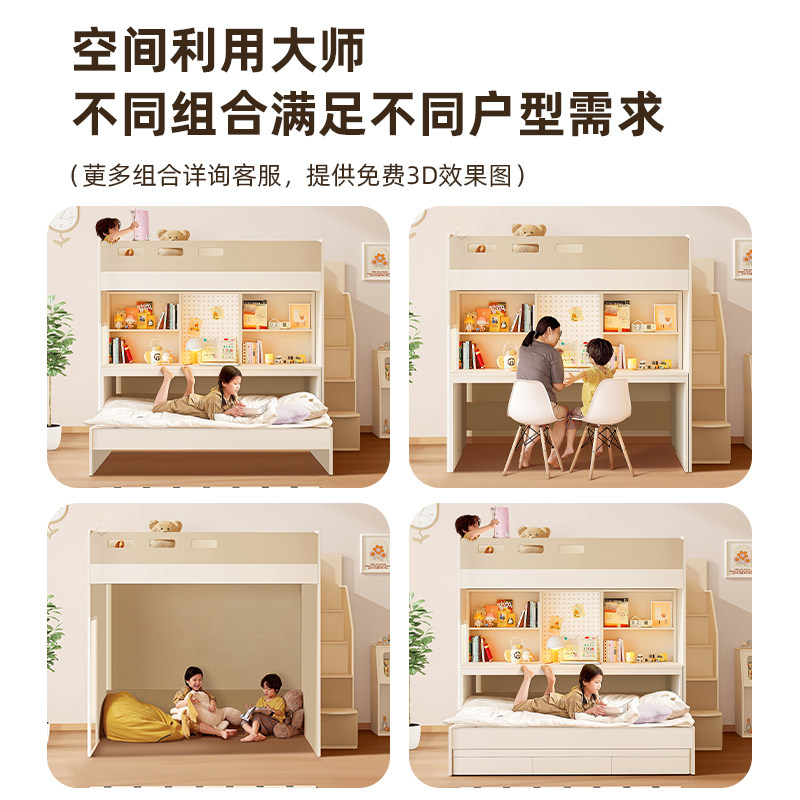 安兰图上床下桌多功能儿童床上下床书桌一体双层床上下铺带抽拉床