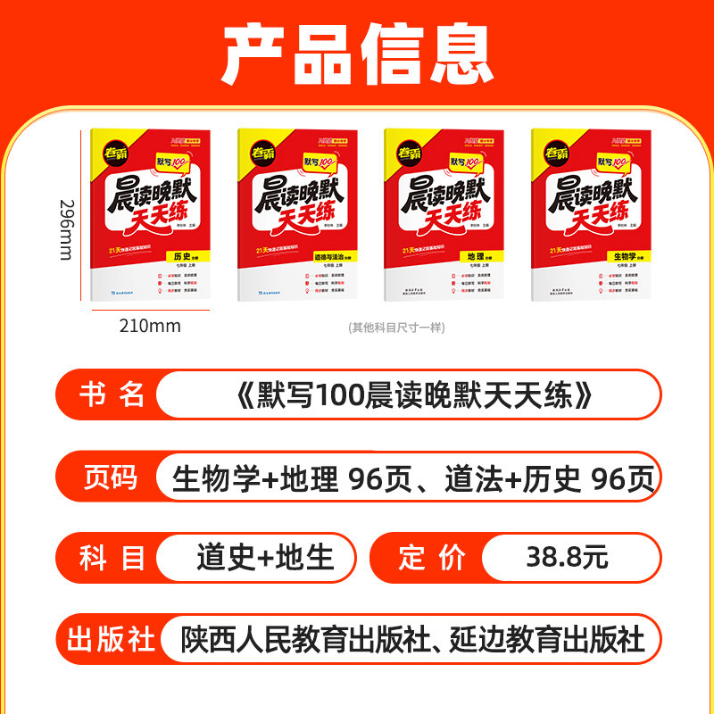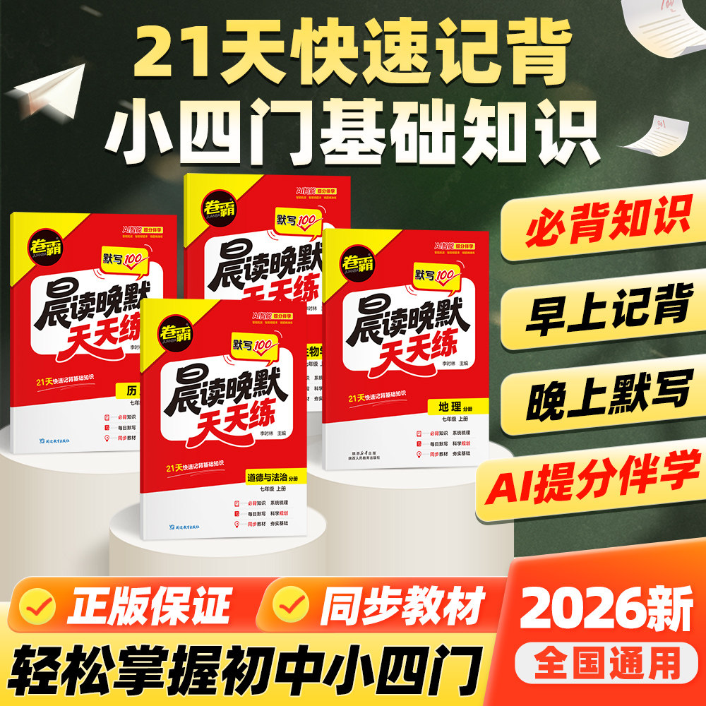 官方旗舰店 2026卷霸默写100晨读晚默天天练七年级上册高一道德与法治历史地理生物