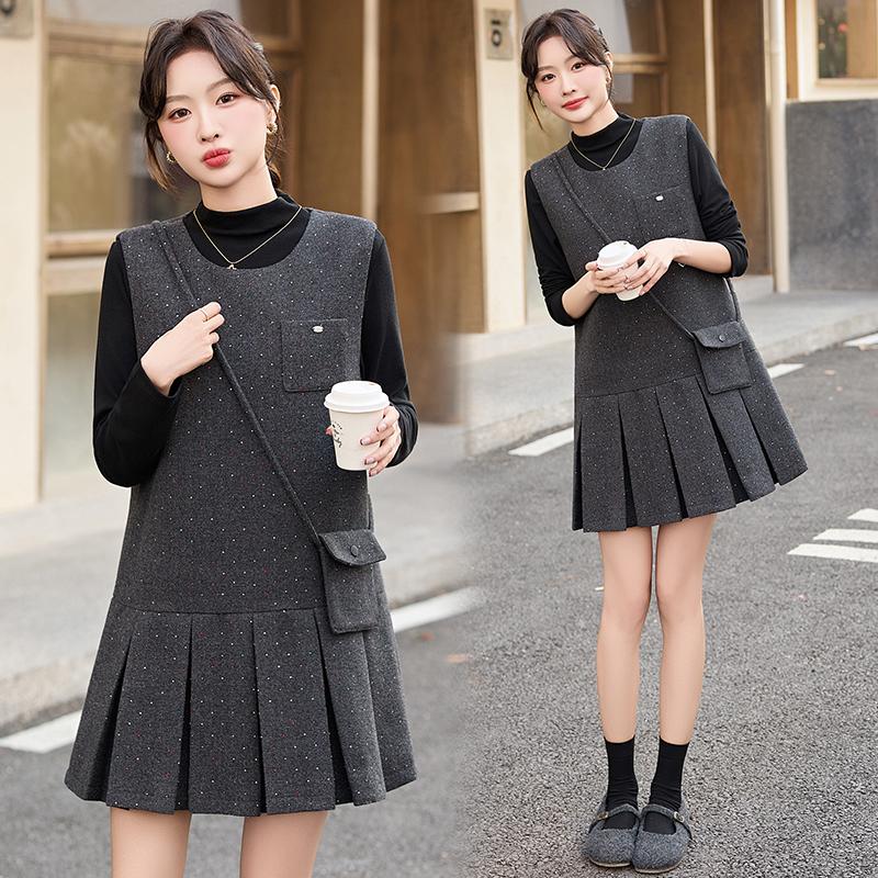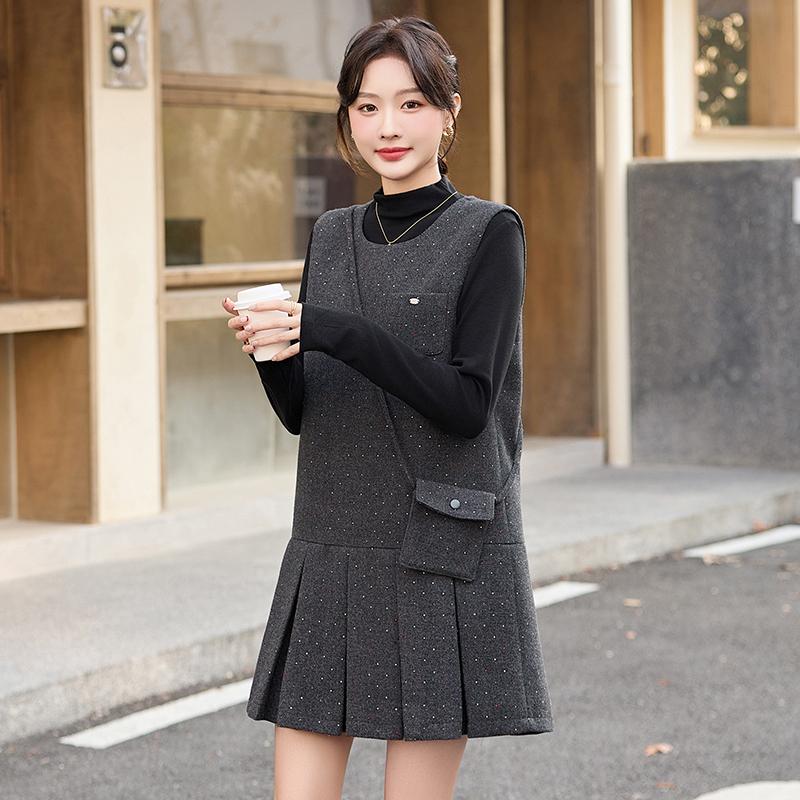 秋冬连衣裙女套装2024新款小个子名媛小香风内搭背心裙穿搭两件套