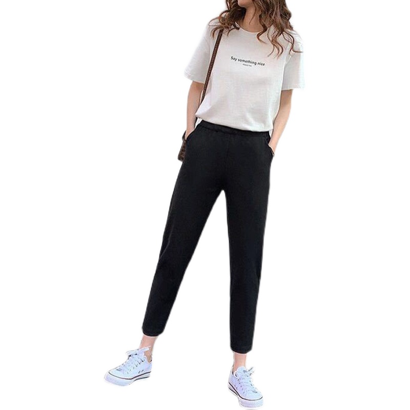 145小个子黑色哈伦西装裤女春夏八分穿搭九分宽松弹力小脚萝卜裤