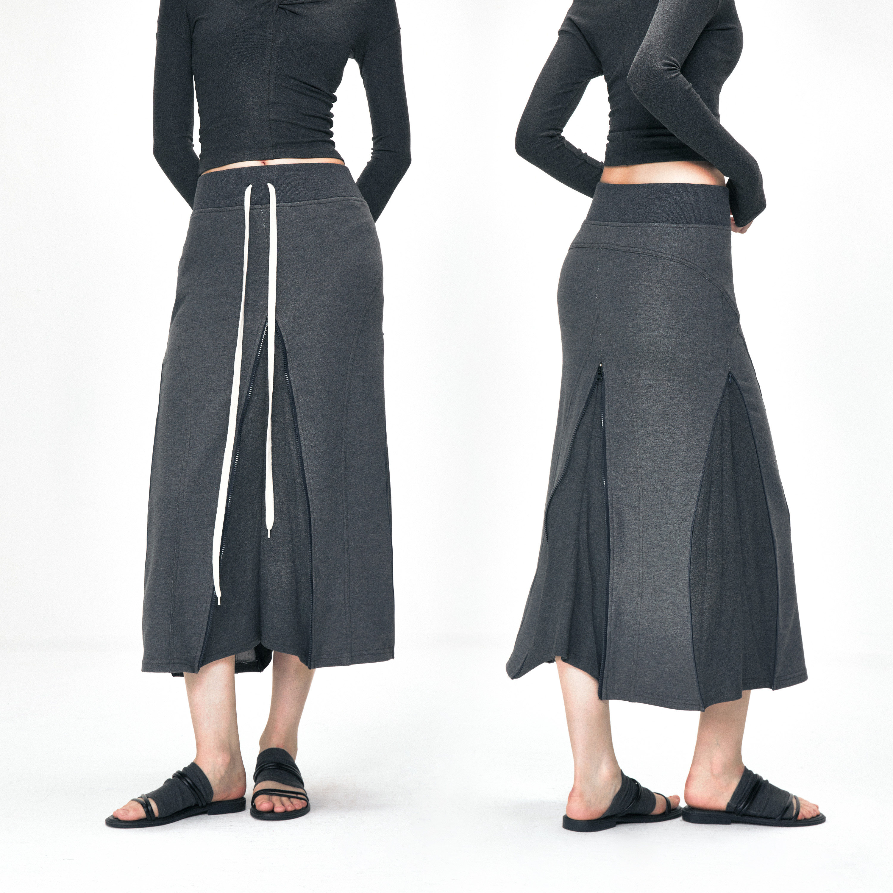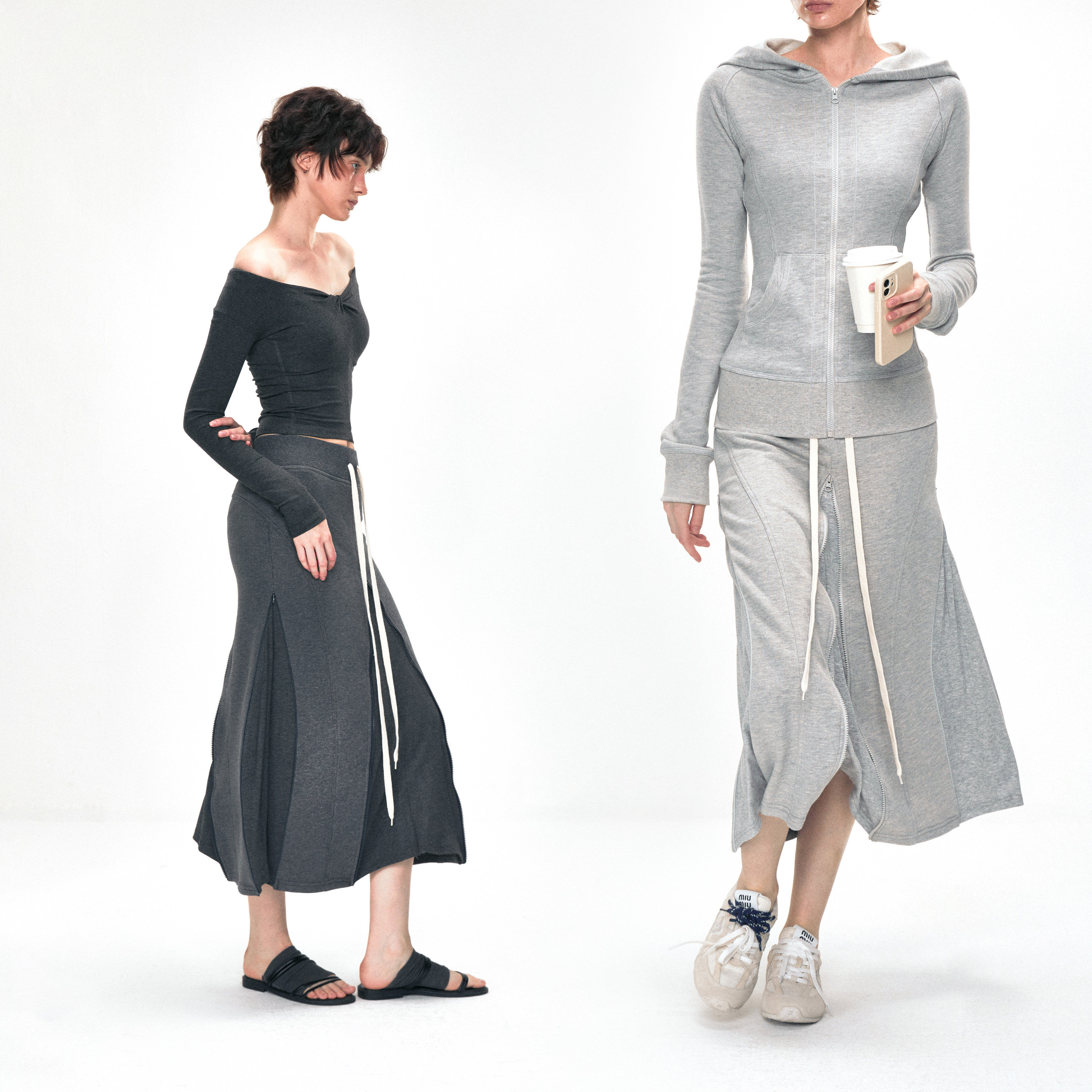 KVKV「拉链可变鱼尾结构」复古A字垂坠感抽绳运动修身包臀半身裙