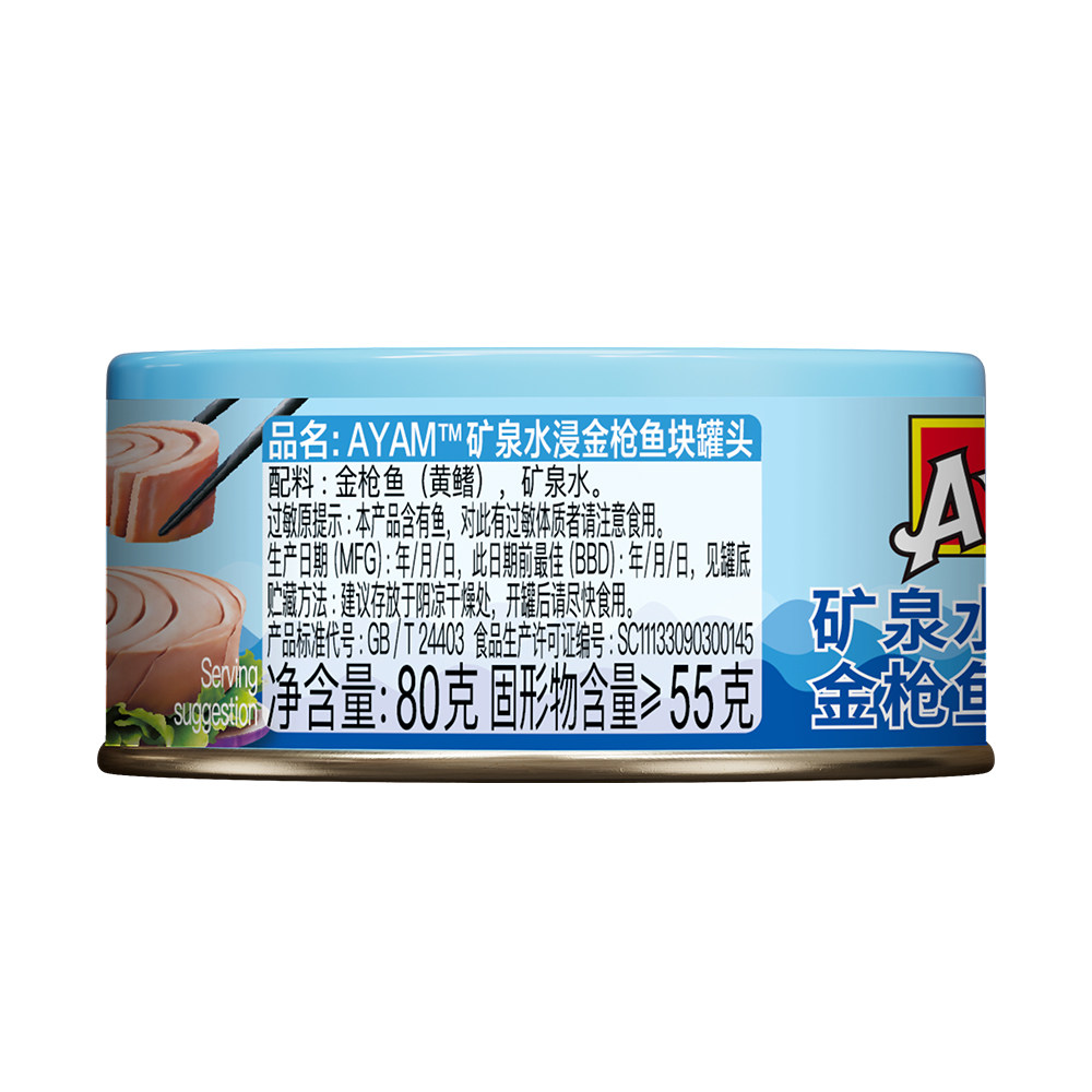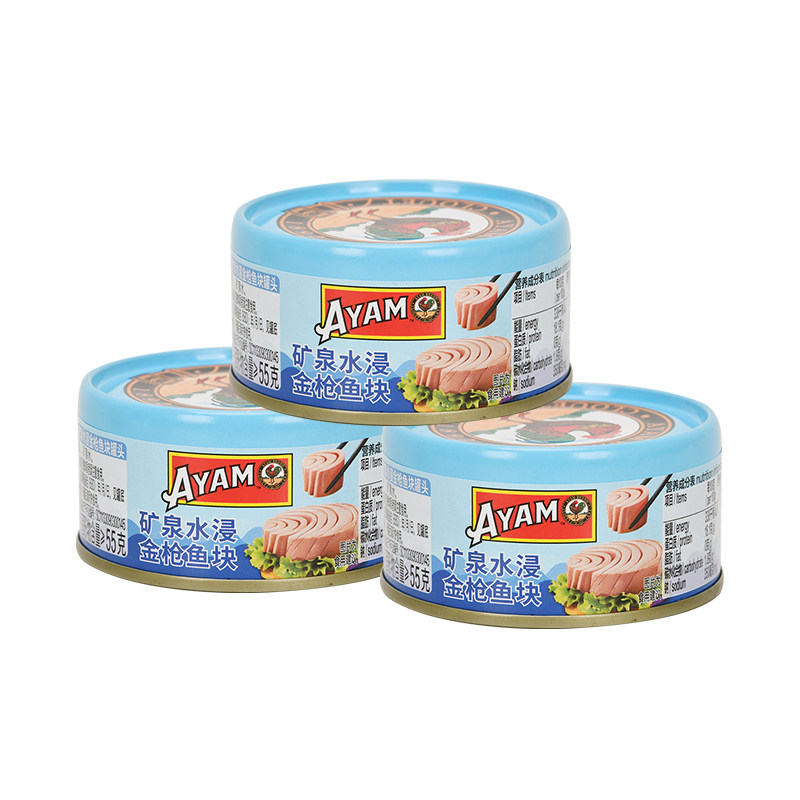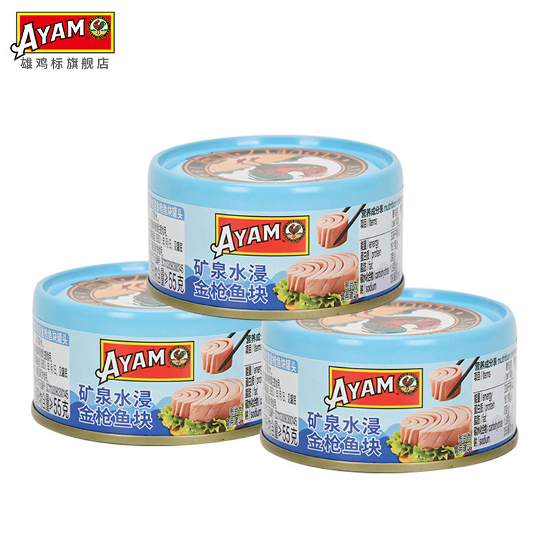 雄鸡标AYAM矿泉水浸金枪鱼罐头80g*3罐海鱼开罐即食罐头美味块状