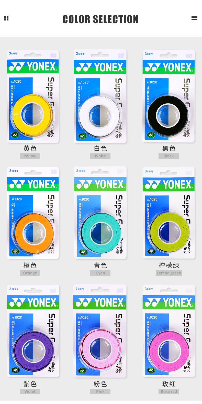 3条装尤尼克斯YONEX羽毛球拍手胶AC102C弹弓鱼竿yy粘性防滑吸汗带