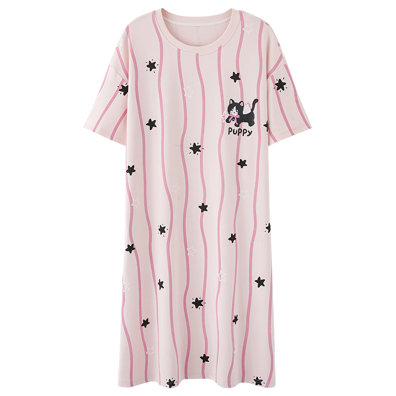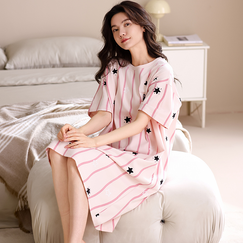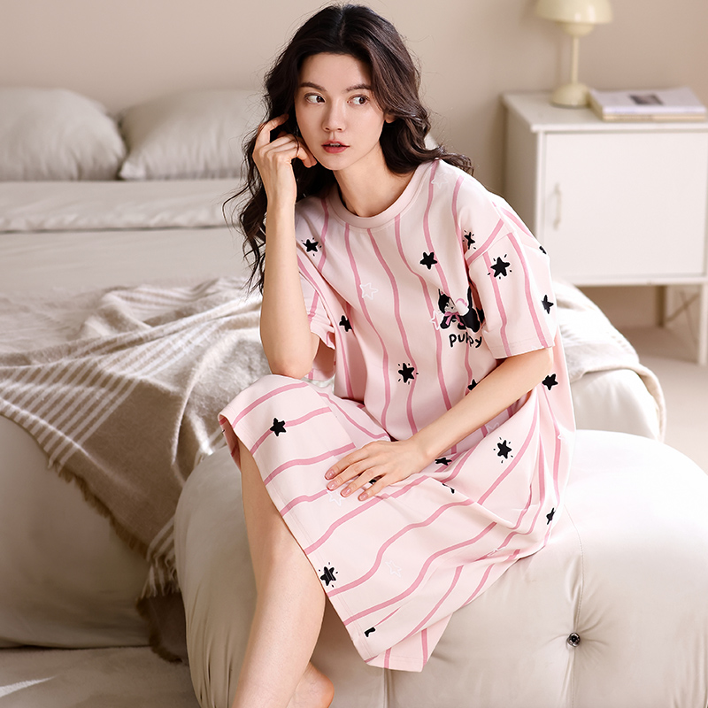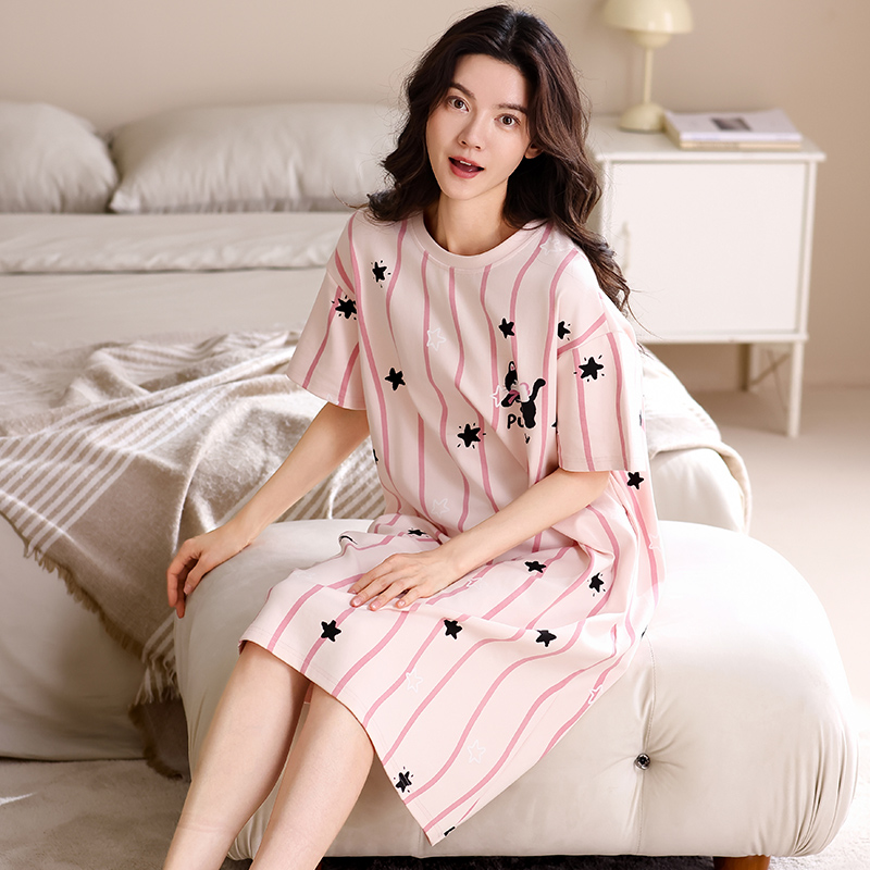 睡裙女2025新款夏季纯棉短袖带胸垫中长款宽松可外穿连衣裙睡衣55