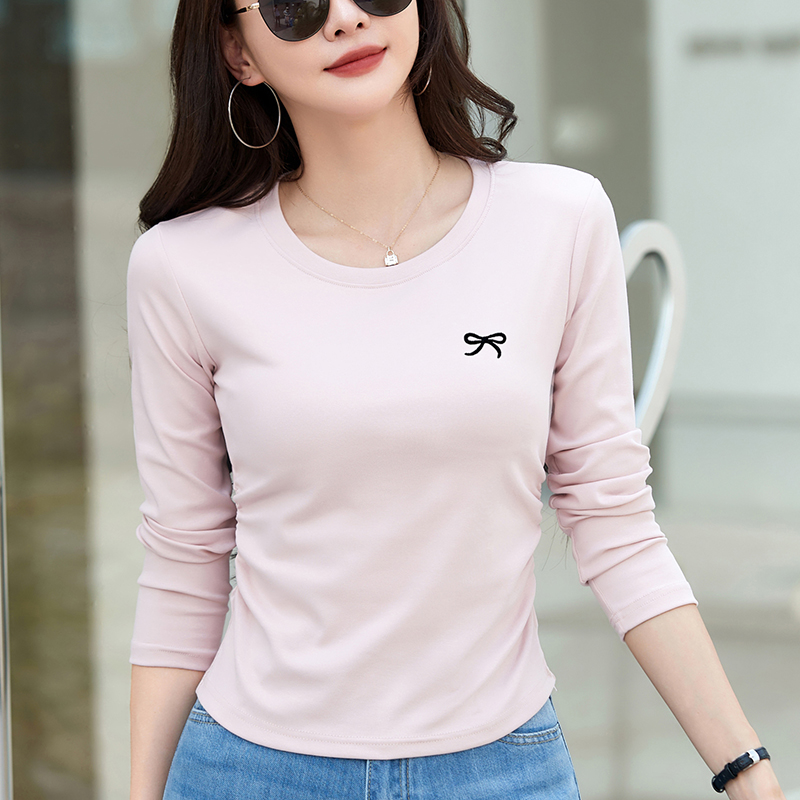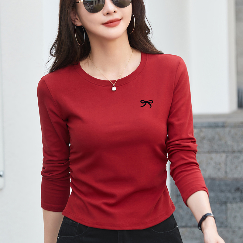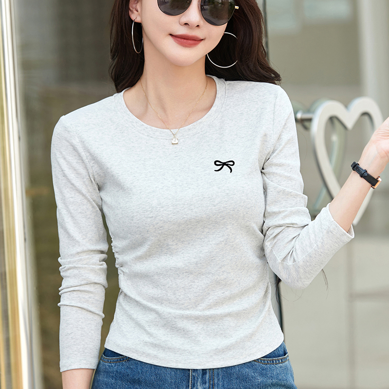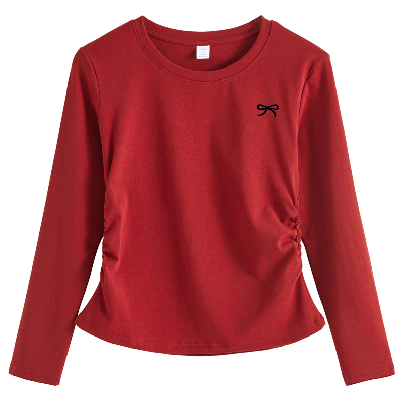 不规则圆领褶皱上衣女春秋冬新款正肩修身显瘦外穿打底衫长袖T恤
