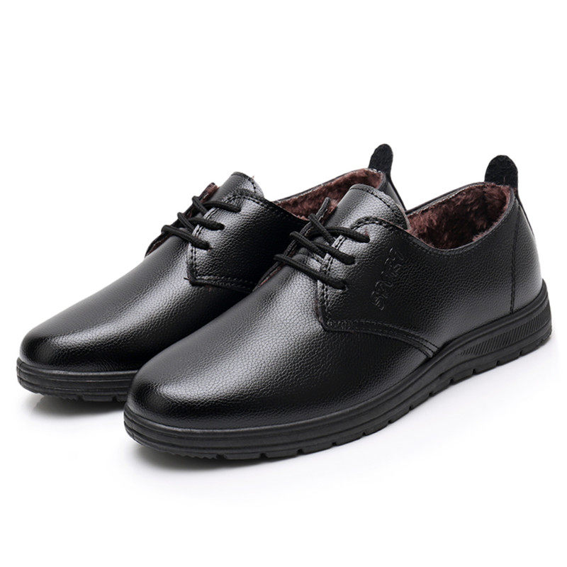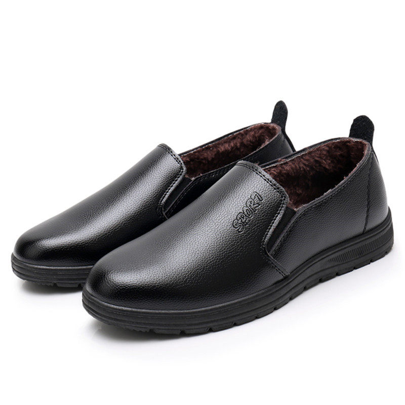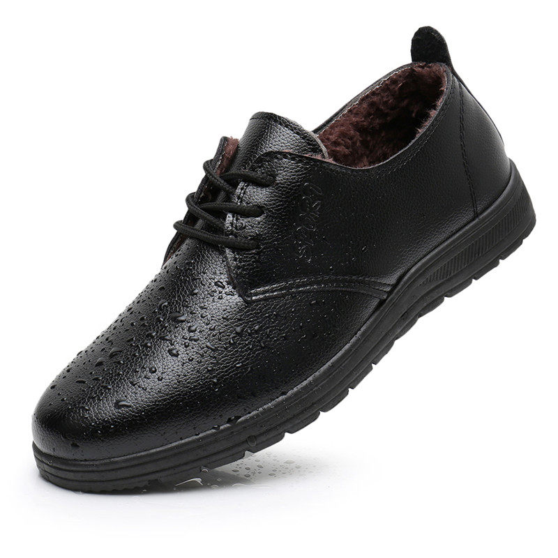 冬季厨师棉鞋男加绒保暖厨房工作鞋男防水防油防滑鞋子黑色皮鞋男