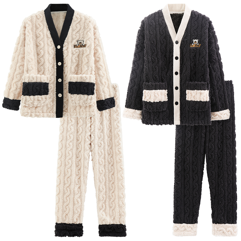 浪莎情侣睡衣珊瑚绒加厚开衫套装