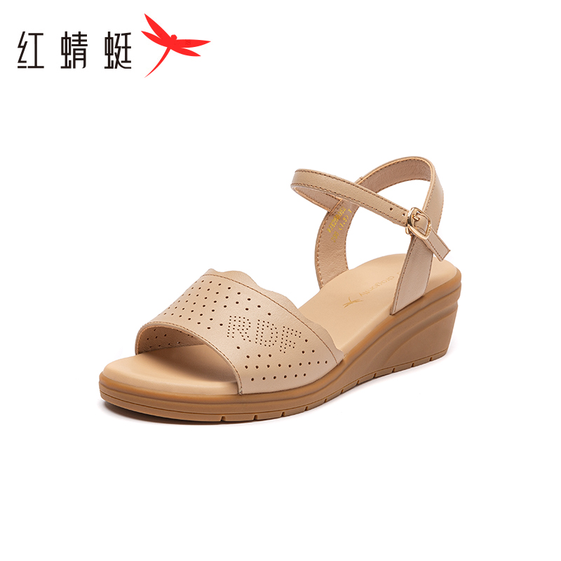 红蜻蜓妈妈凉鞋女2025夏季新款时尚优雅镂空厚底坡跟一字带女鞋