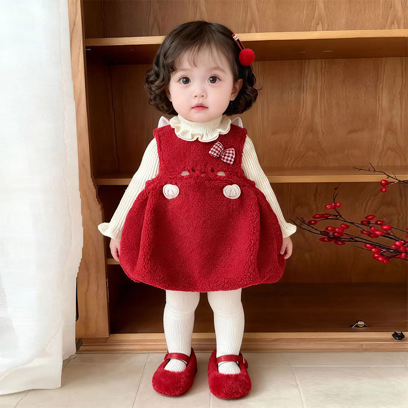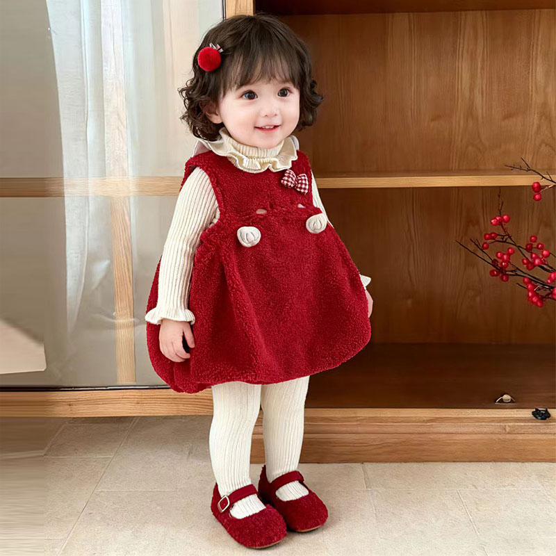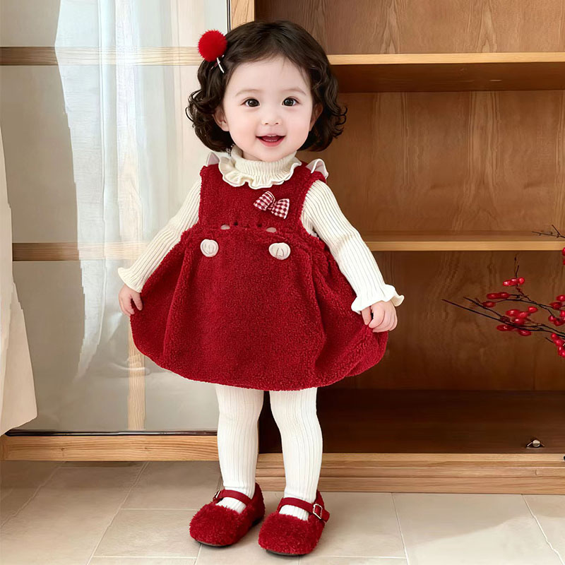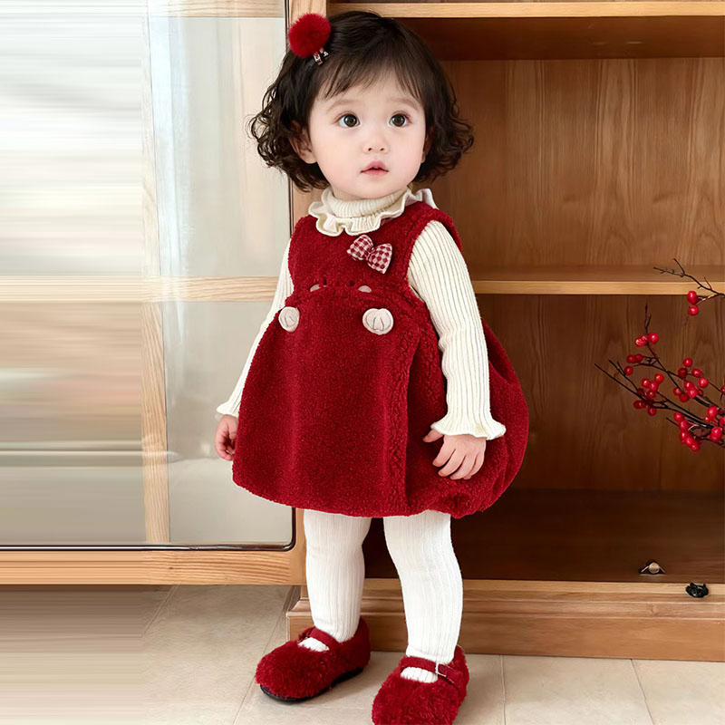 女童连衣裙秋冬背带裙子背心裙女宝宝周岁礼服喜庆新年拜年服童装