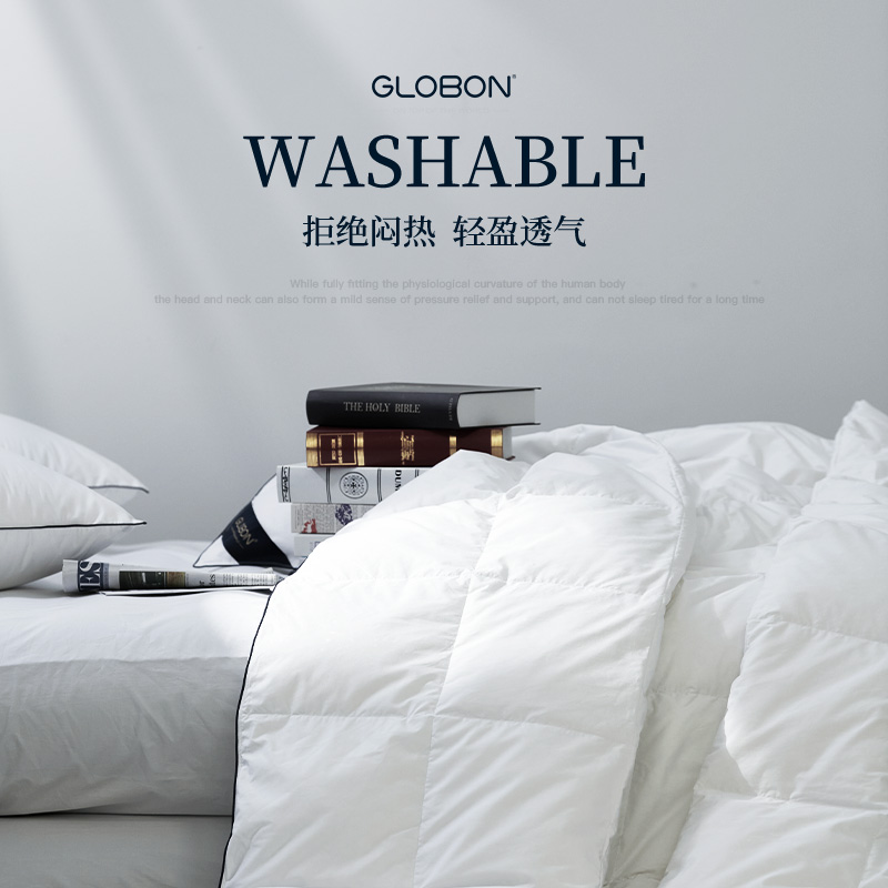 Globon可水洗羽绒被95白鹅绒被子空调被夏季薄款纯棉被芯春秋被