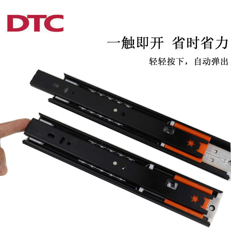 dtc东泰反弹三节轨全拉自弹抽屉轨道免拉手侧装滑道衣柜橱柜导轨