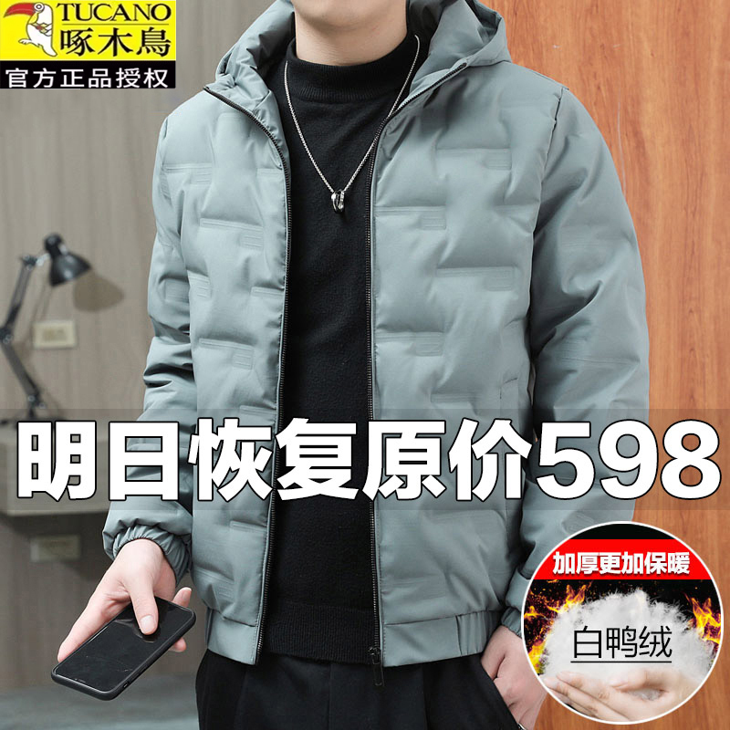啄木鸟冬季羽绒服男士2025新款加厚保暖连帽棉衣外套防风面包服男