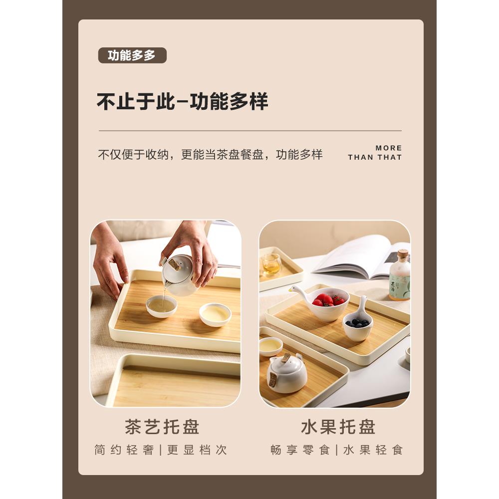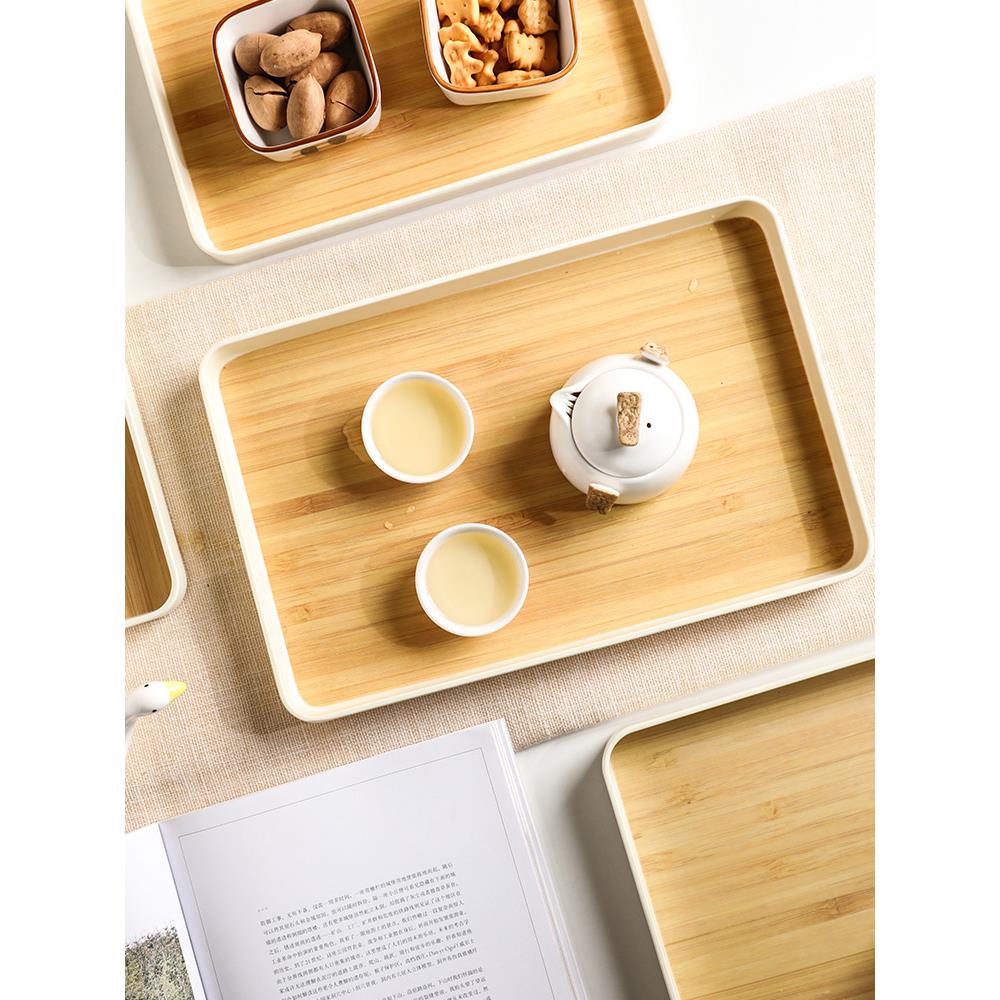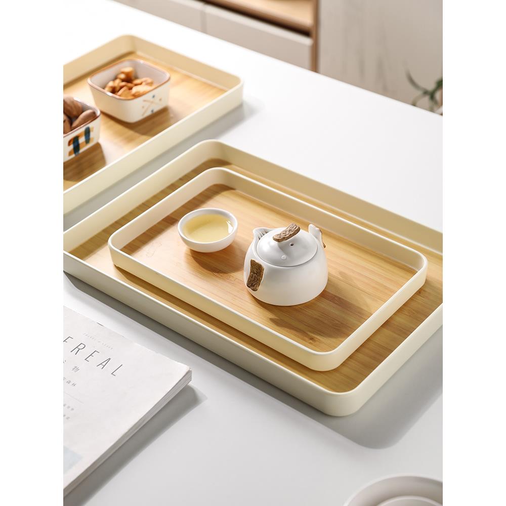 木纹托盘家用放茶杯水杯子茶盘水果盘子塑料长方形端菜收纳餐盘