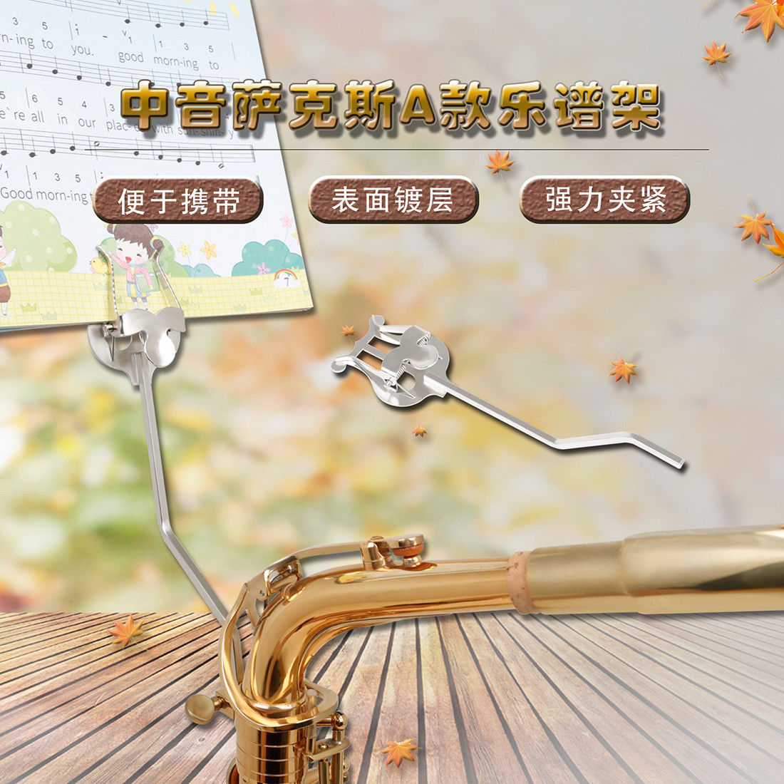 中音萨克斯乐谱架便携式乐谱夹短行进曲谱夹滑扣调节琴谱支架子