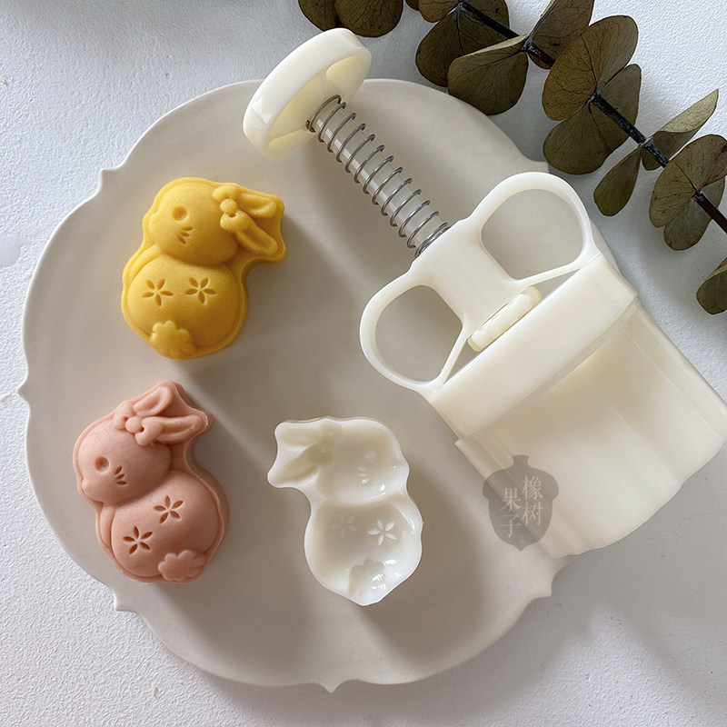 橡树果子萌萌小兔子绿豆糕月饼模具家用亲子diy面团按压工具50g