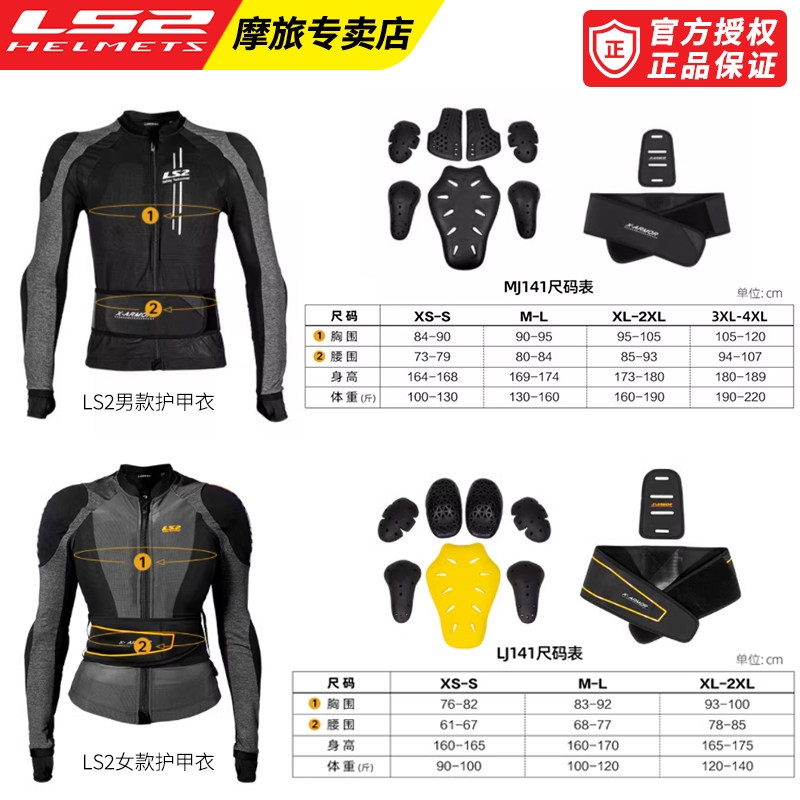 LS2护甲衣摩托车机车赛车骑行服秋冬季四季男女软甲衣CE防摔护具