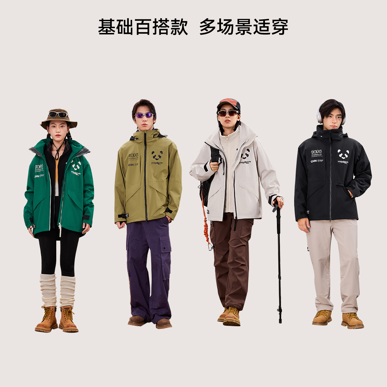 骆驼户外熊猫冲锋衣男三合一外套秋冬加绒防水仿生膜旅游登山服女
