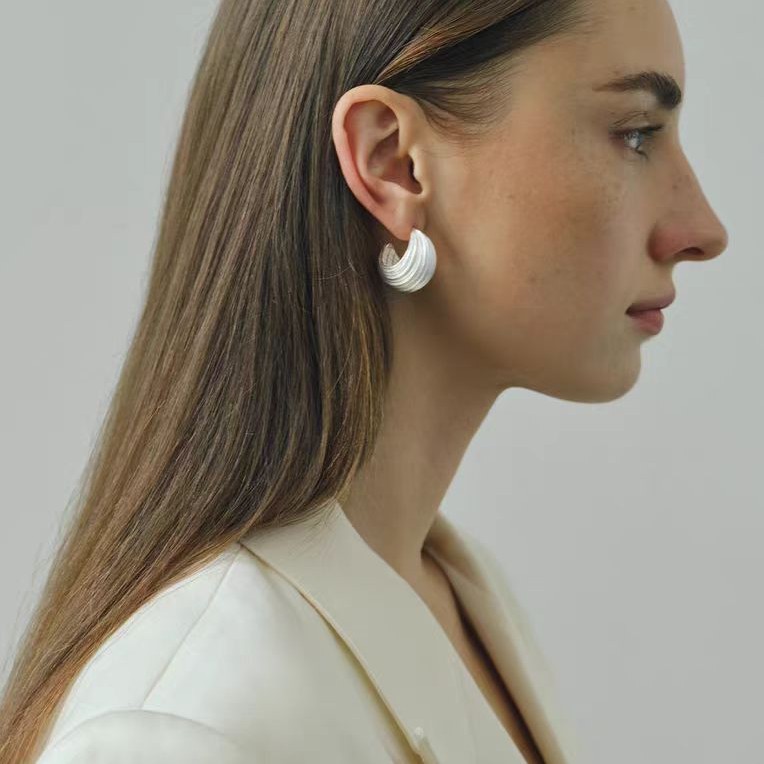 原版现货轻奢风拉丝耳环小号几何高级气质款耳饰小众设计款耳钉女