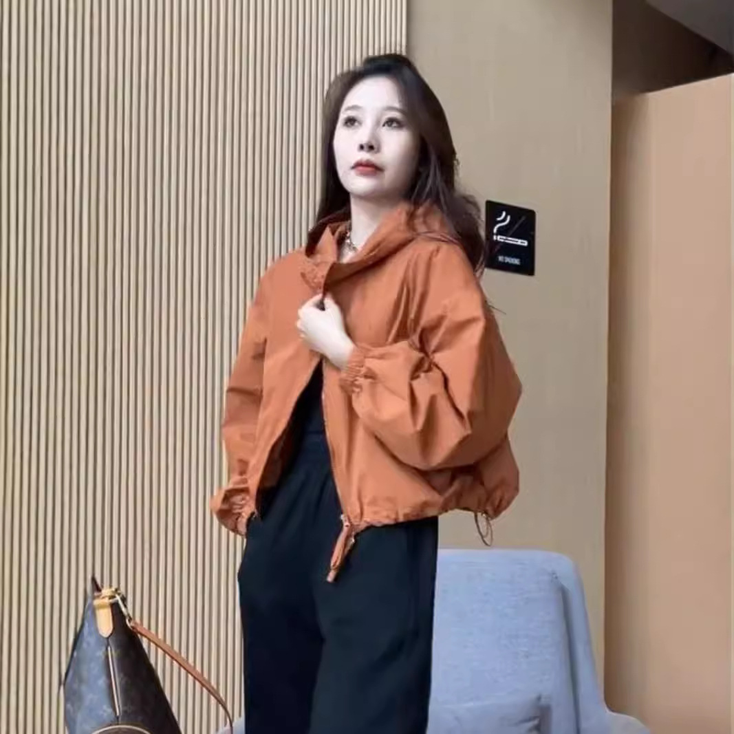 酒红外套女2025春秋新款连帽短款冲锋衣设计感小个子休闲宽松夹克
