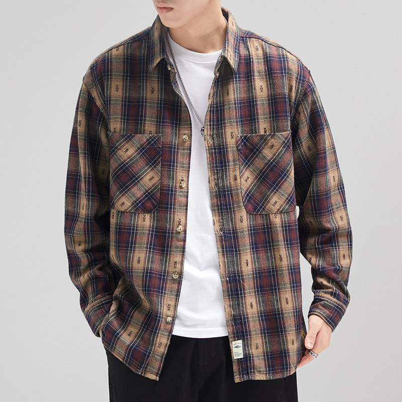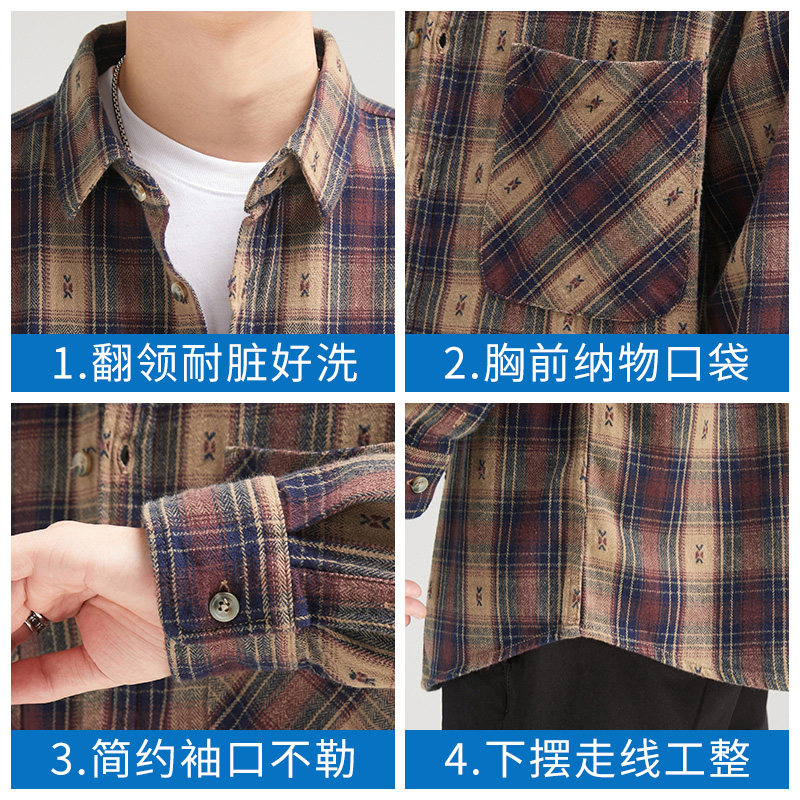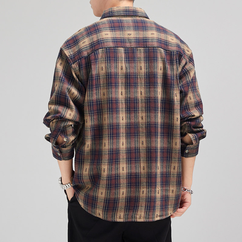 罗蒙美式复古格子衬衫男长袖2025新款英伦休闲潮牌春秋衬衣外套男