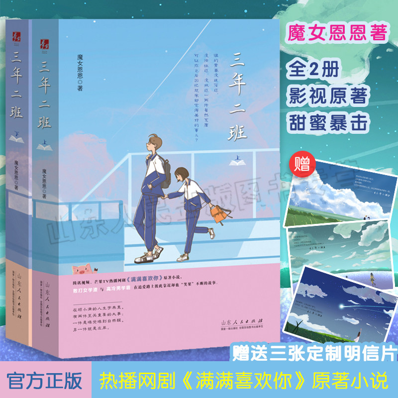正版包邮 三年二班全2册魔女恩恩原著腾讯芒果网剧满满喜欢你原著小说散打女学渣高冷男学霸青春文学影视同期书顾小满左岸甜蜜暴击
